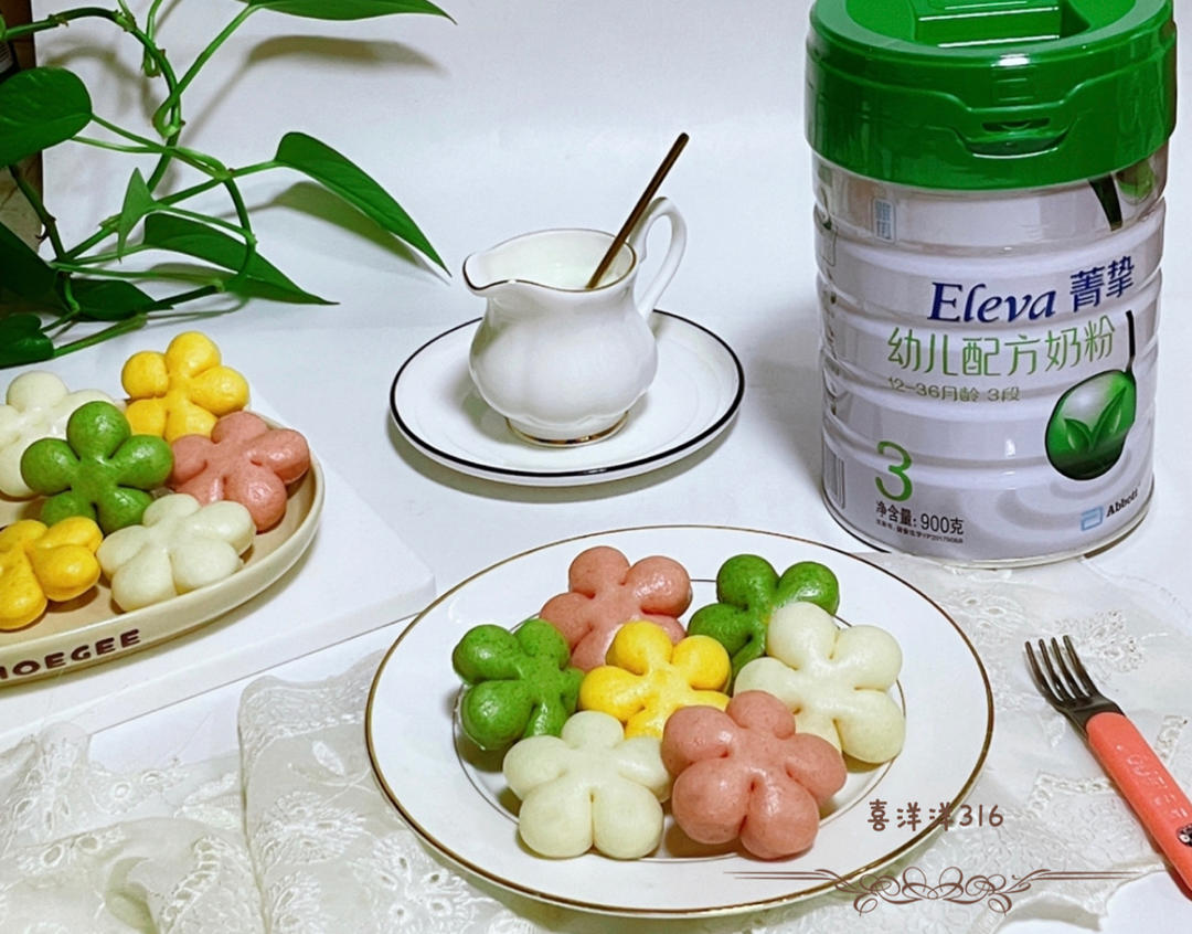 好吃又好看,营养又健康的多彩奶香花朵小馒头,搭配一杯冲好的雅培挚...