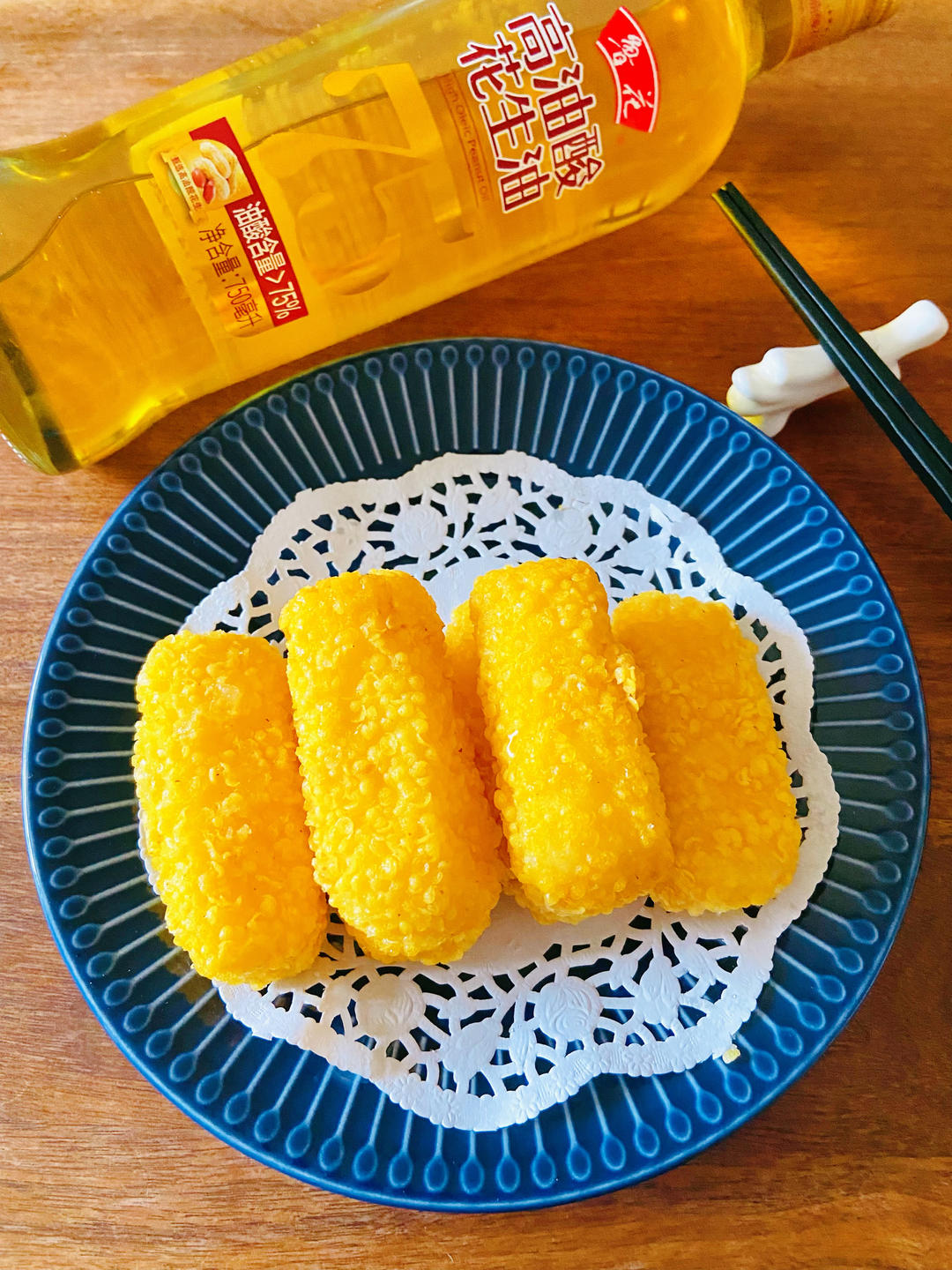 用鲁花高油酸花生油,炸制的鲜奶,金黄酥脆...