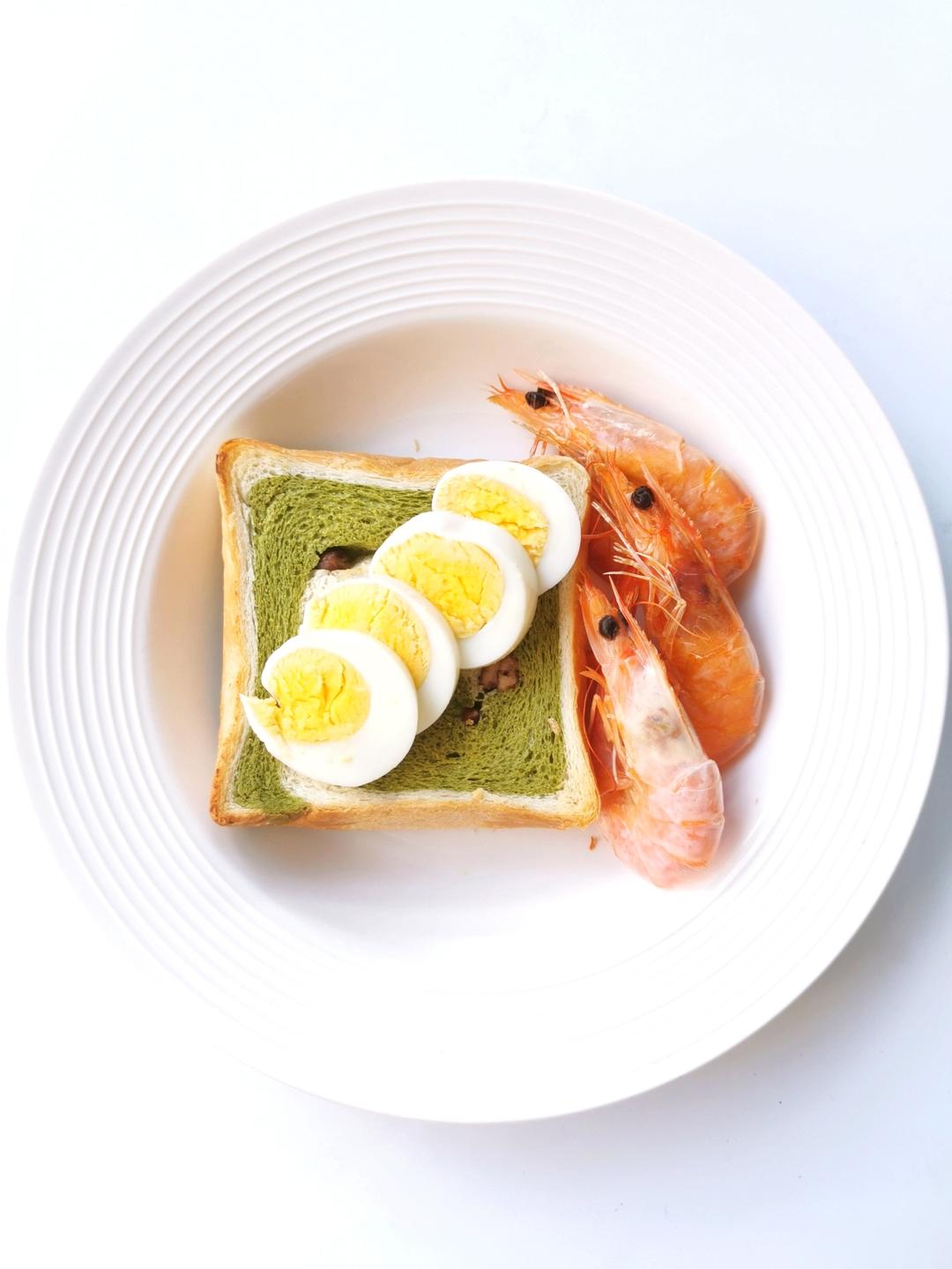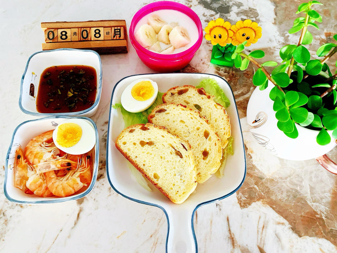 欧包,虾🦐,鸡蛋🥚,生菜叶,香蕉🍌酸奶