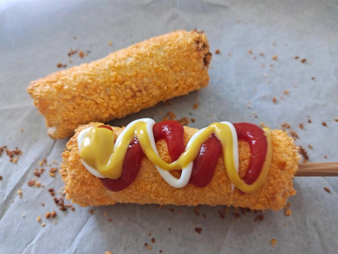 烤箱做的,上面的口用切下来的面包边封一下,防止芝士流出来。