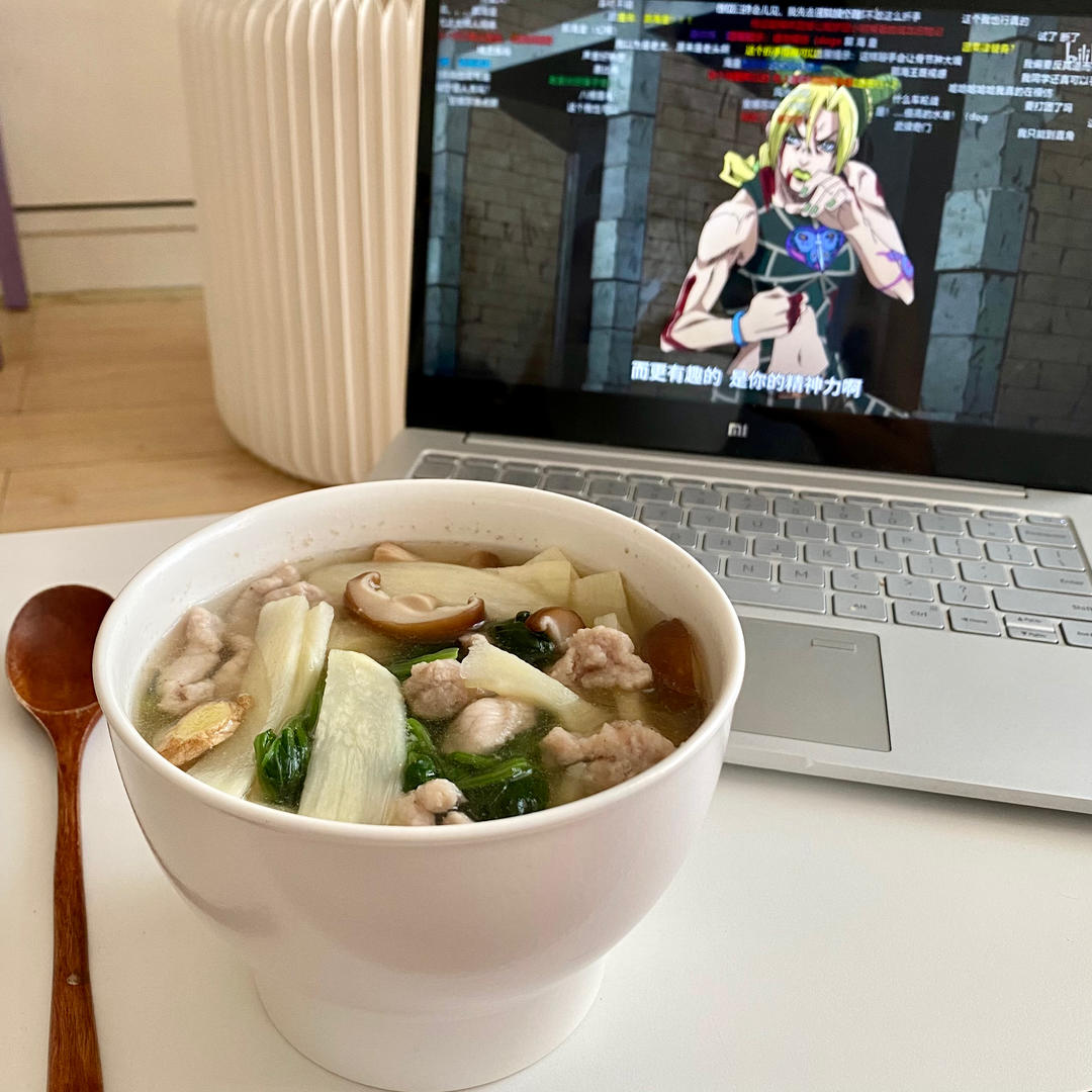 菠菜茭白香菇滑肉汤