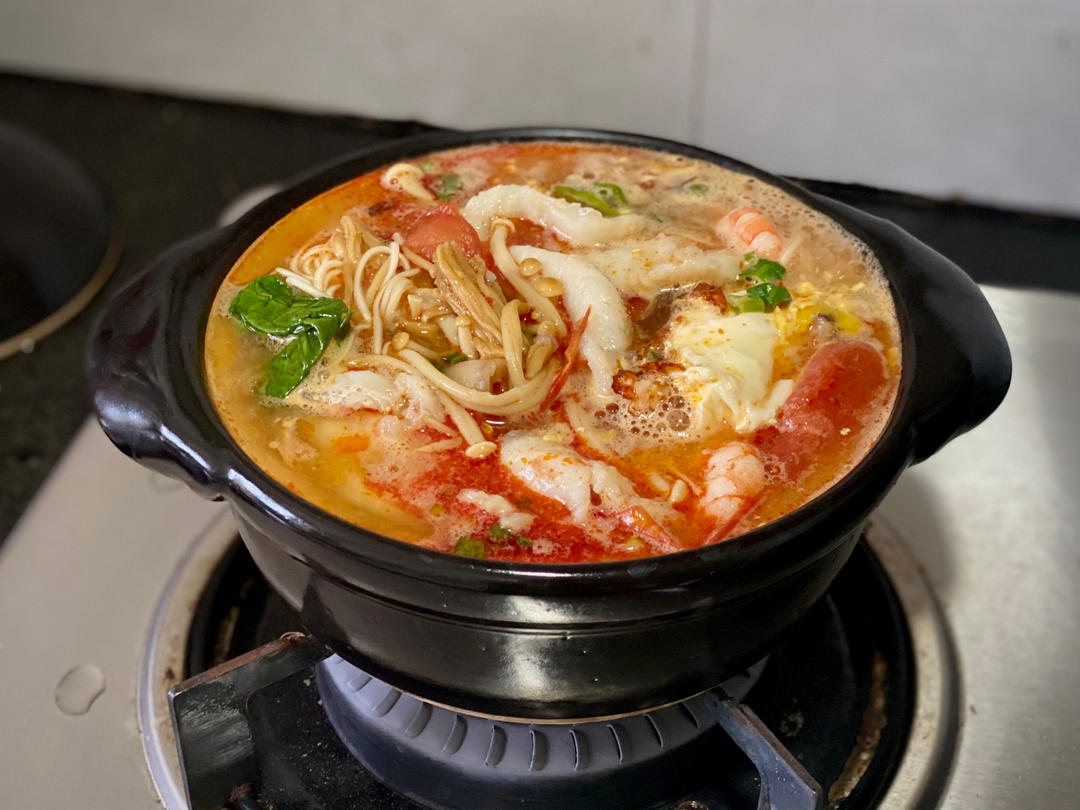 鲜虾番茄酸汤鱼砂锅面