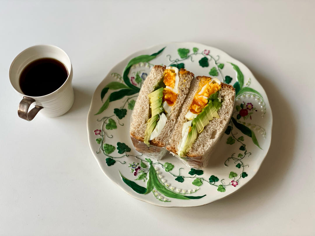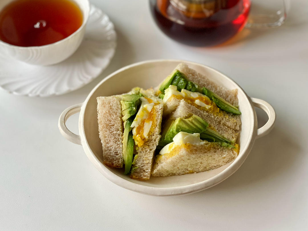 🈶:牛油果鸡蛋三明治(溏心鸡蛋、牛油果、乳清吐司)&热红茶