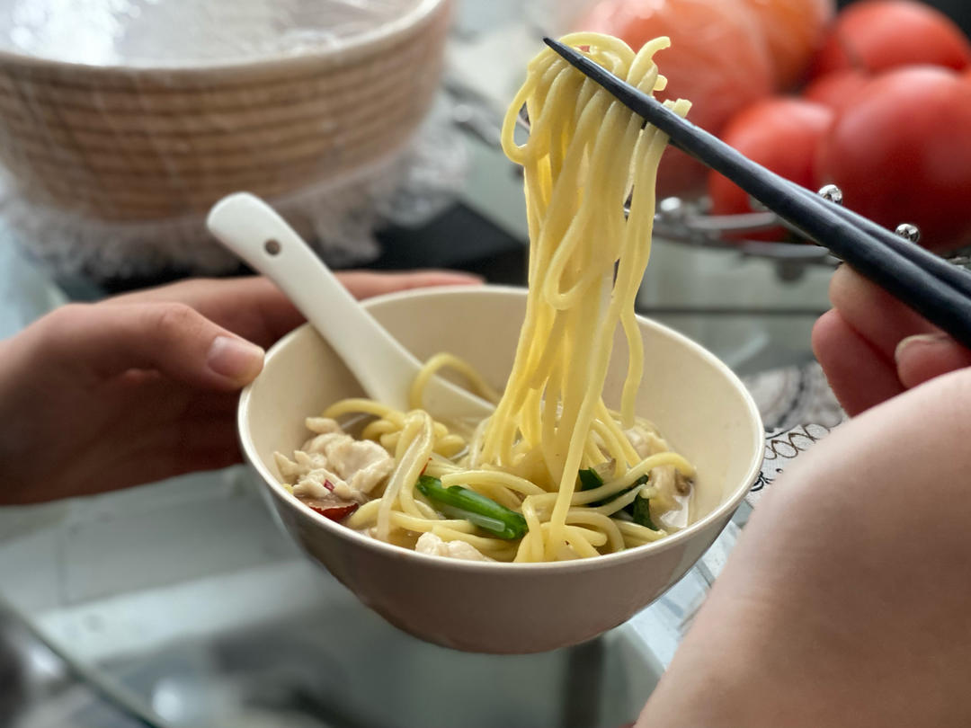 🈶️:鸡小胸肉、菠菜、豆芽、蟹味菇和油面