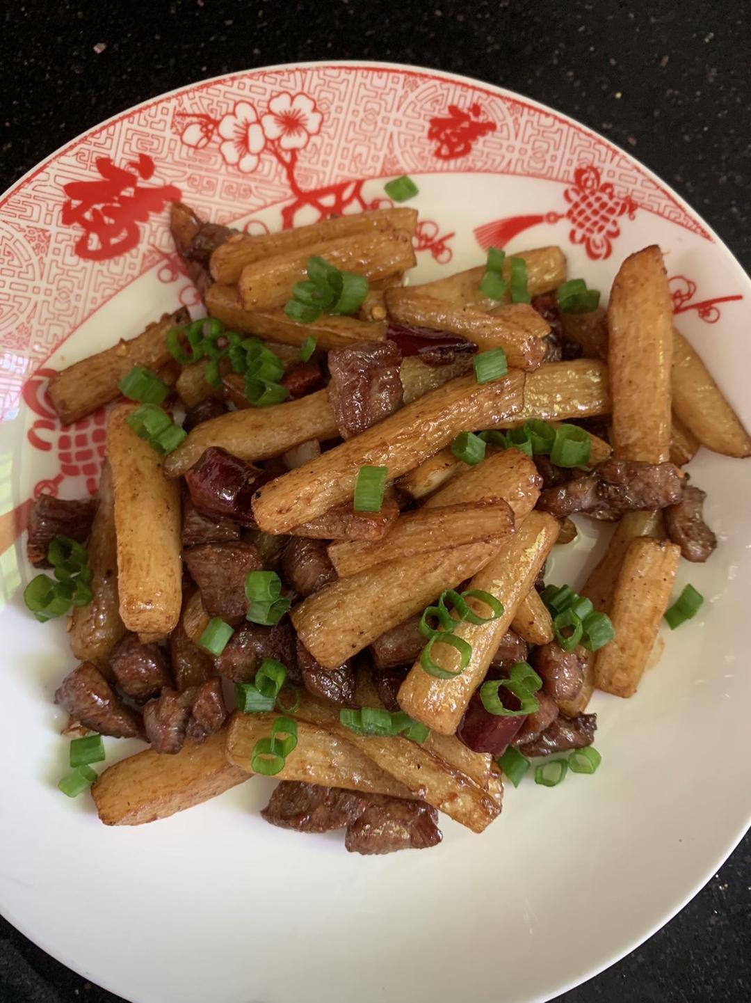 小炒牛肉荷兰豆+番茄鱼片