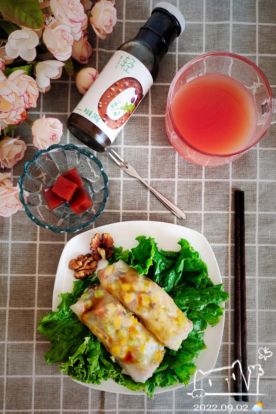 越南春卷皮做的满料腊肠肠粉🍽️,味道不错,但是还是喜欢澄粉的肠粉,这种黏黏的口...