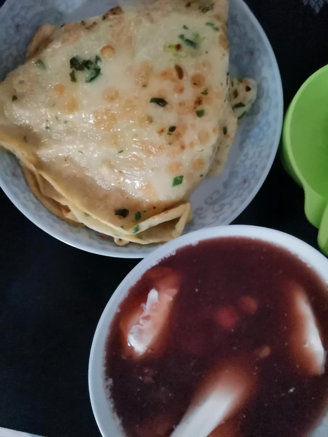 荷包蛋八宝粥,煎饼