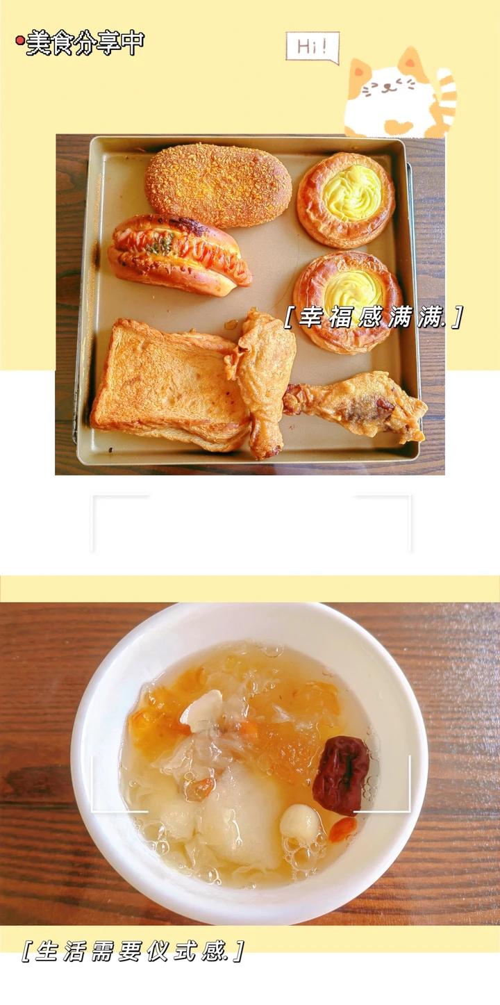银耳百合莲子桃胶雪梨汤&炸鸡腿和各种甜点(昨天买的今天烤箱复热)