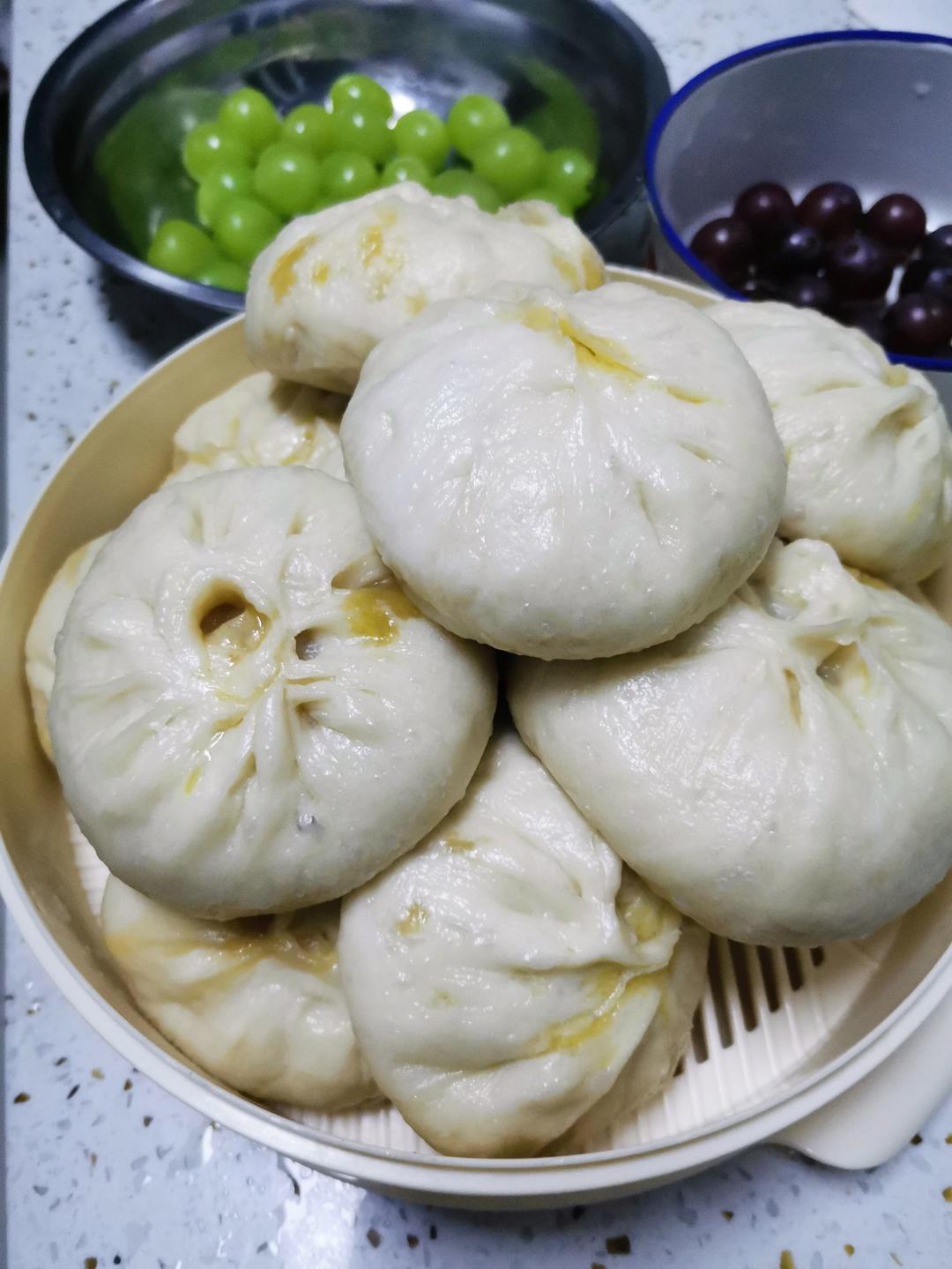 晚上下班回家蒸包子,臭小子喜欢的猪肉虾仁玉米馅😊第一锅个头有点大,赶上俺娘的厨艺了😜第二...