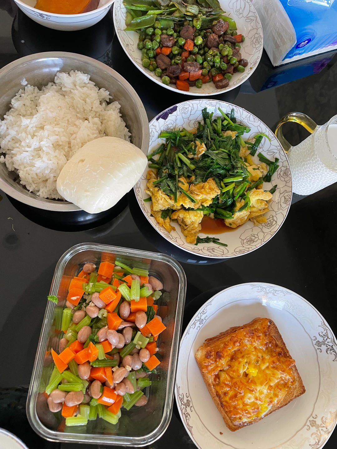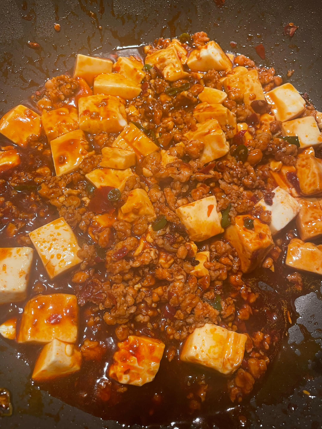 麻婆豆腐,非常成功,不仅光盘,米饭不够连汤都蘸着面包片吃了。