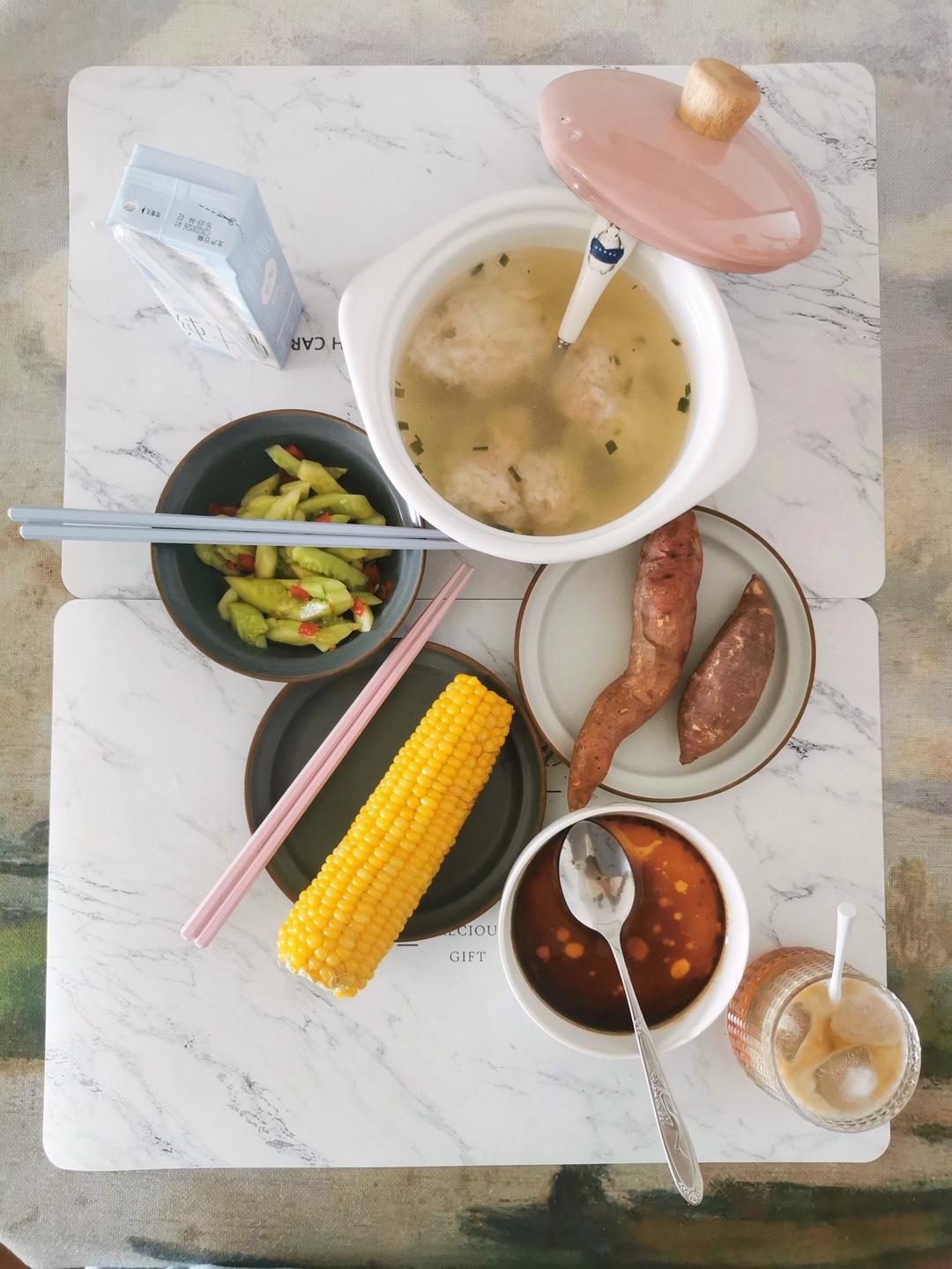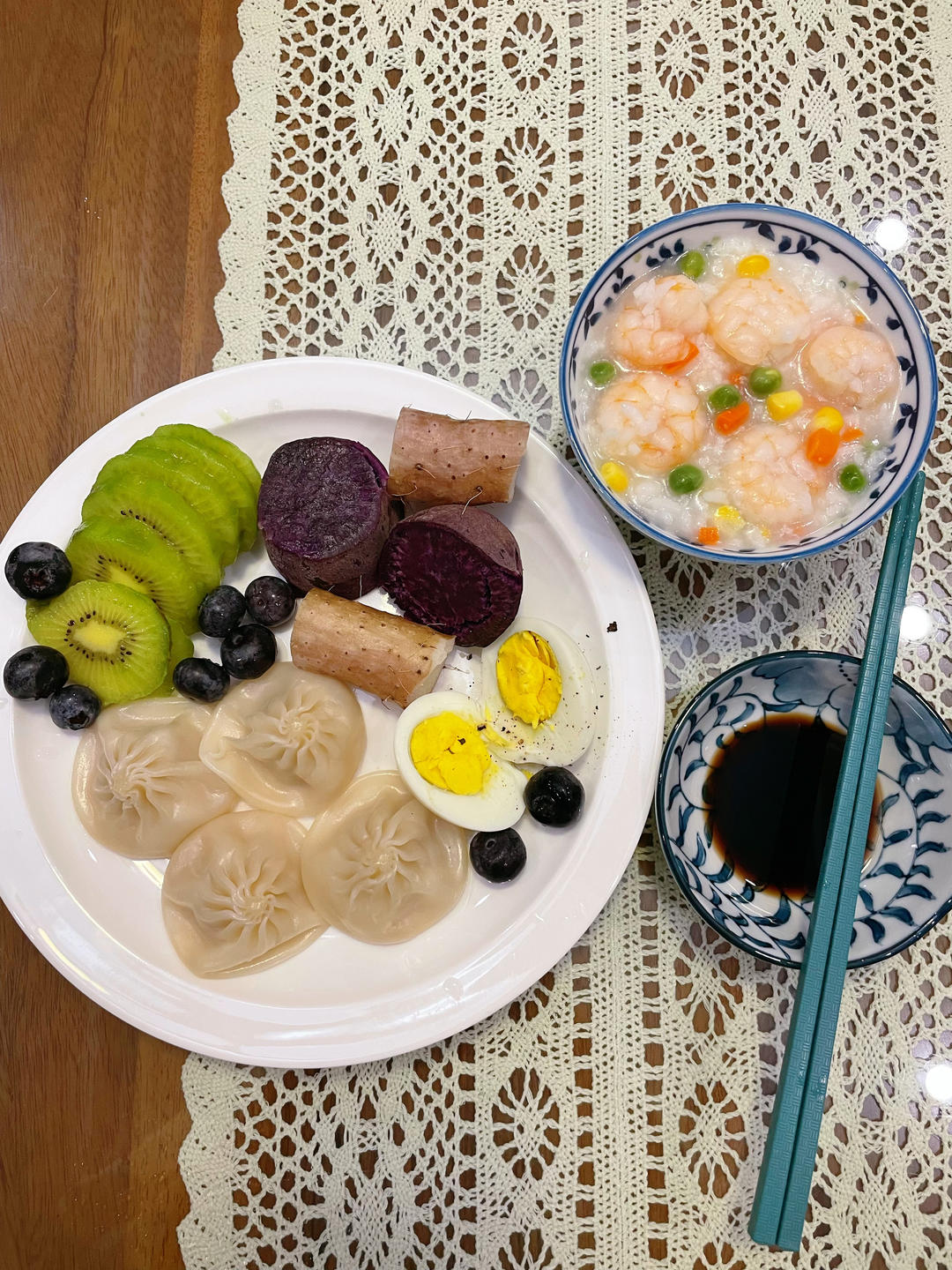汤包,紫薯,山药,虾仁粥,粗细搭配!