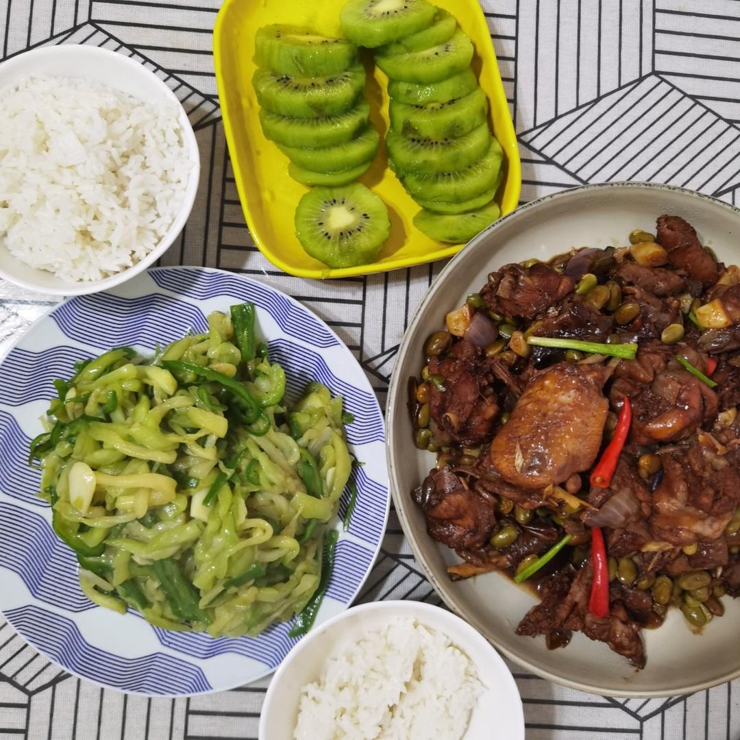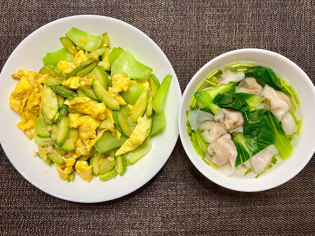 鸡蛋炒西葫芦、馄饨
