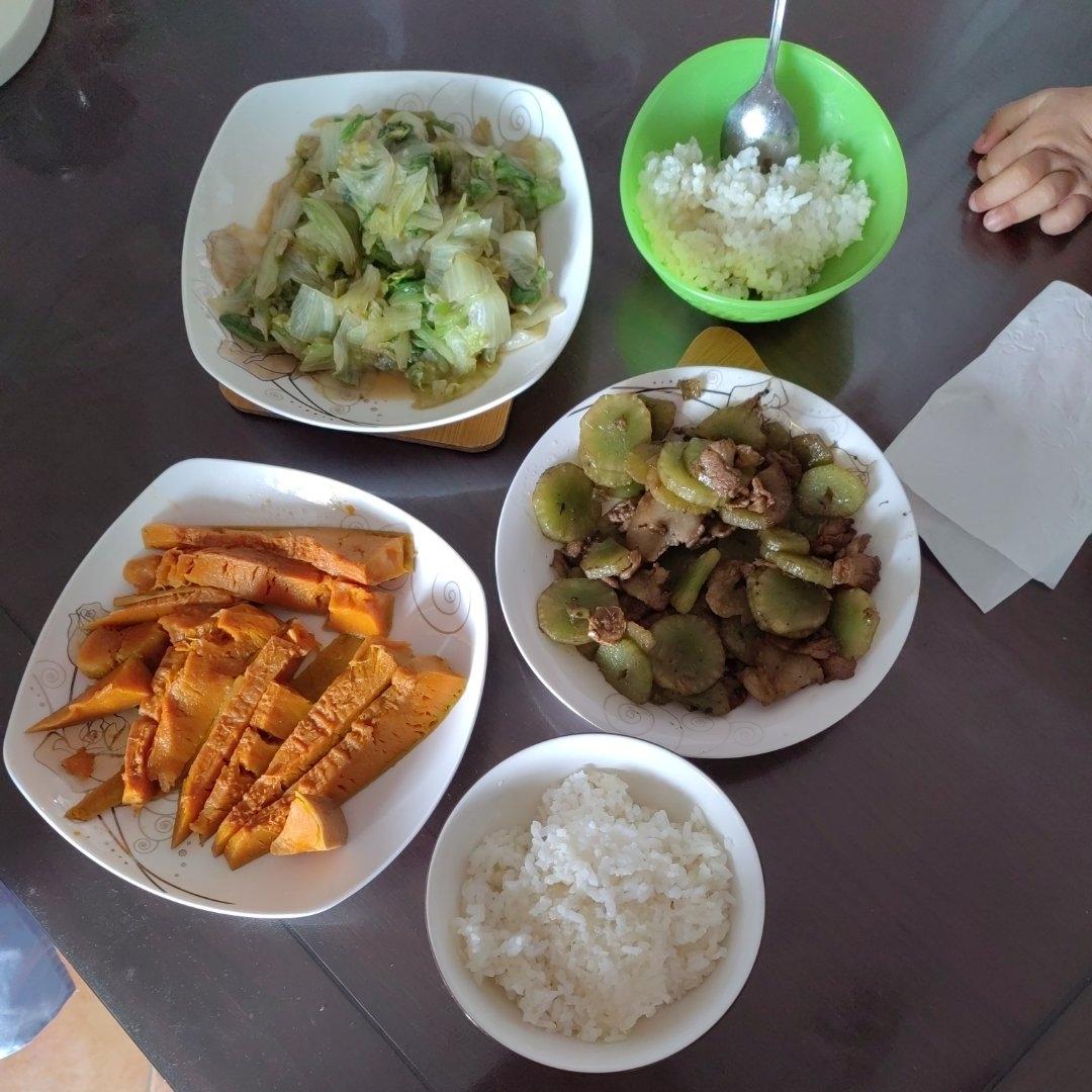 黄瓜炒肉,清炒小白菜