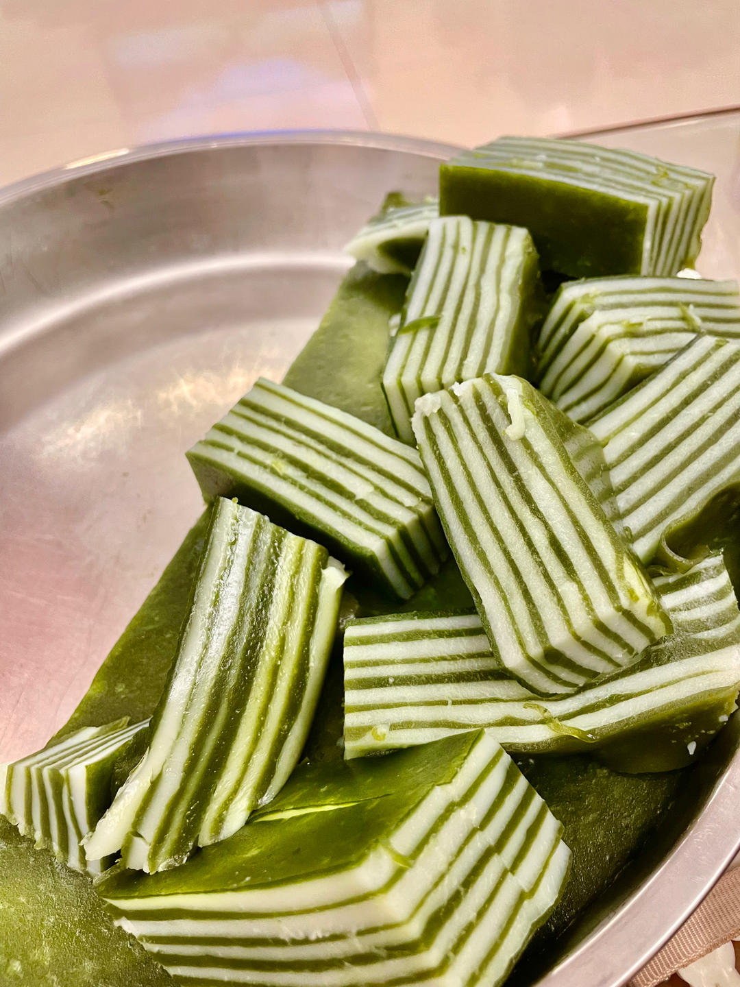 交作业了,按照配方做,斑斓叶换成斑斓粉25g,斑斓味不重,总体感觉还好。唯一的bug就是不q弹。直接2种都用生浆不用熟浆...