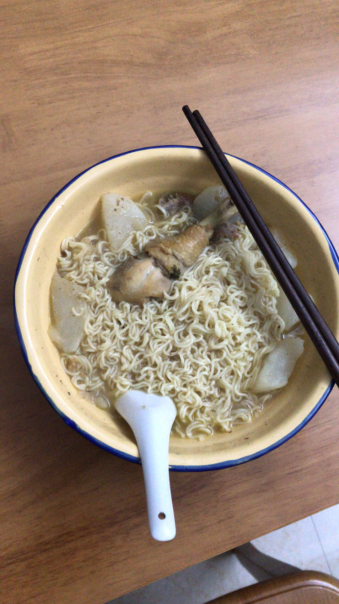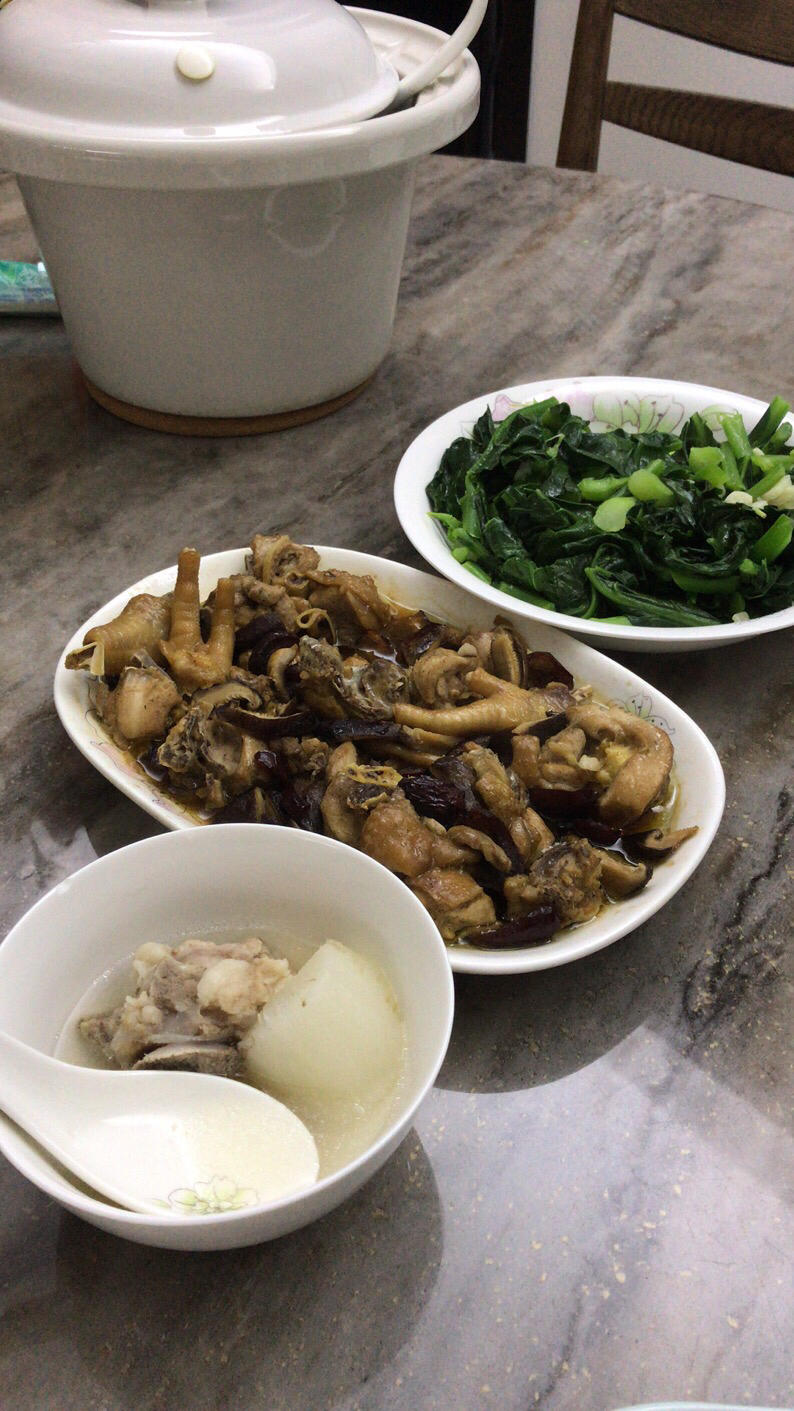 快手但是胡乱造的一盆面,南姜鸡腿和白萝卜猪骨汤倒是很平衡,略咸。