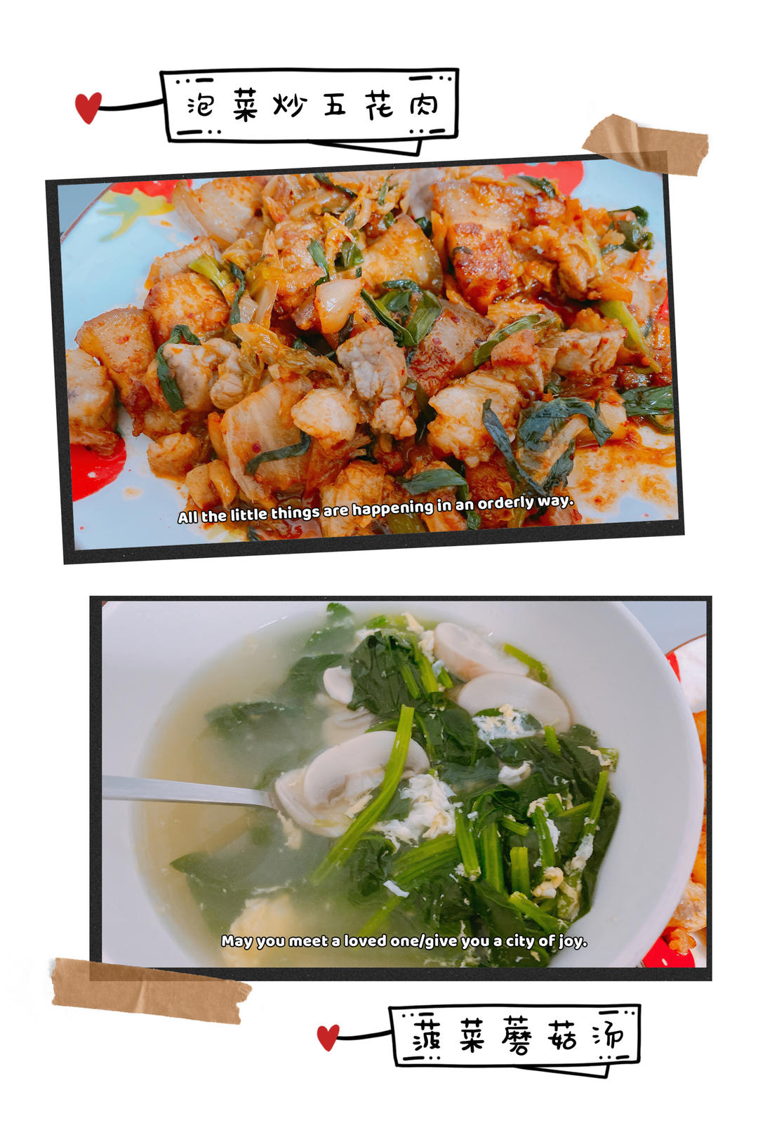 泡菜炒五花肉,鲜灵小菠菜汤