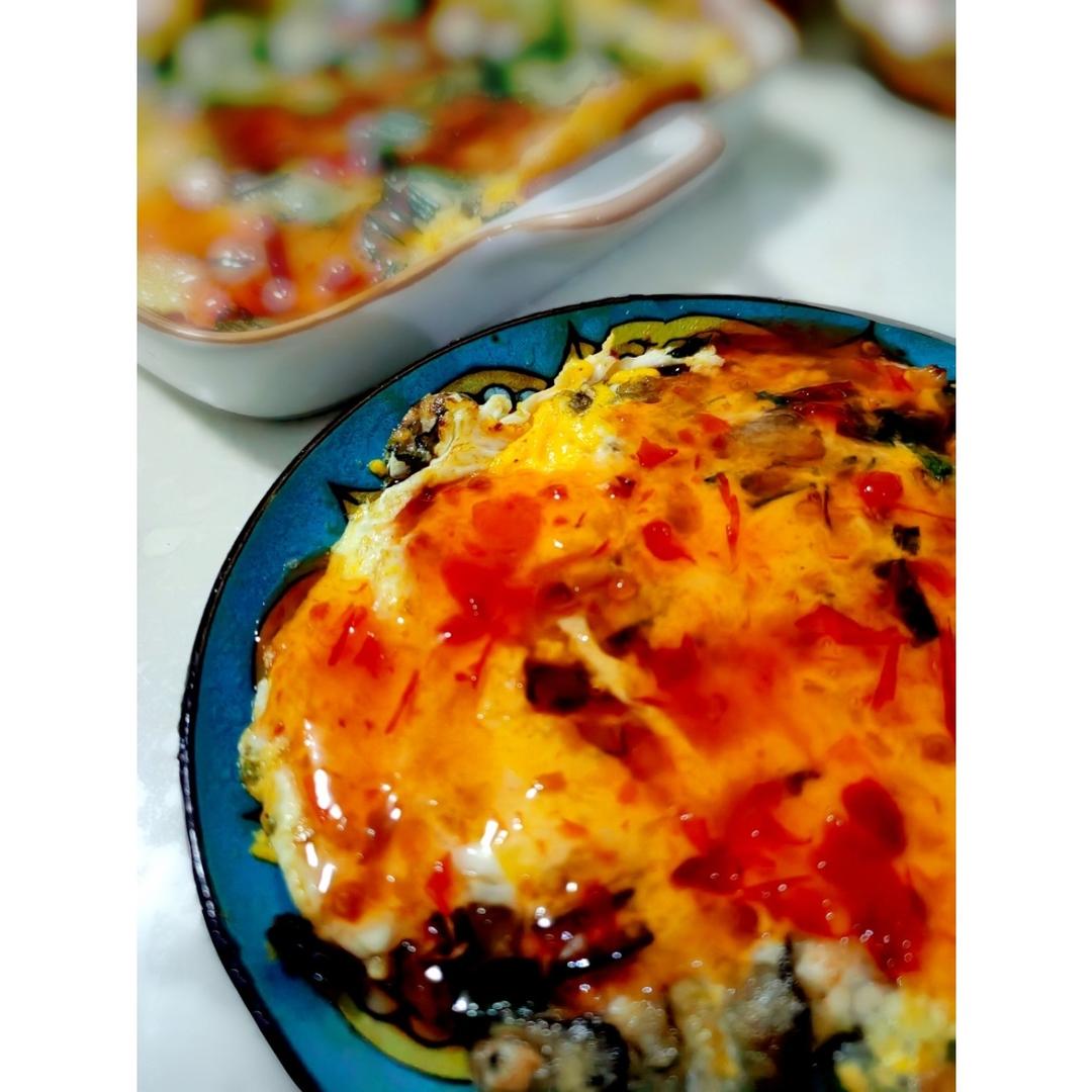 做完搁冰箱里,第二天微波+(平底锅无油)微煎了一下 ,无敌好吃。