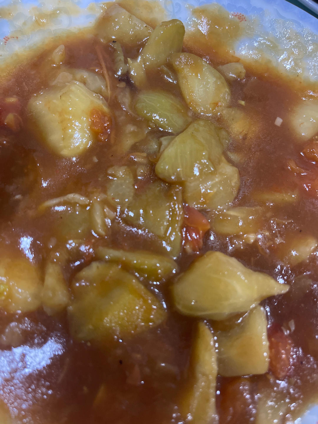 没有青椒,把茄子挤出来的水也倒进去了没浪费,稍微有点点咸,别的很完美