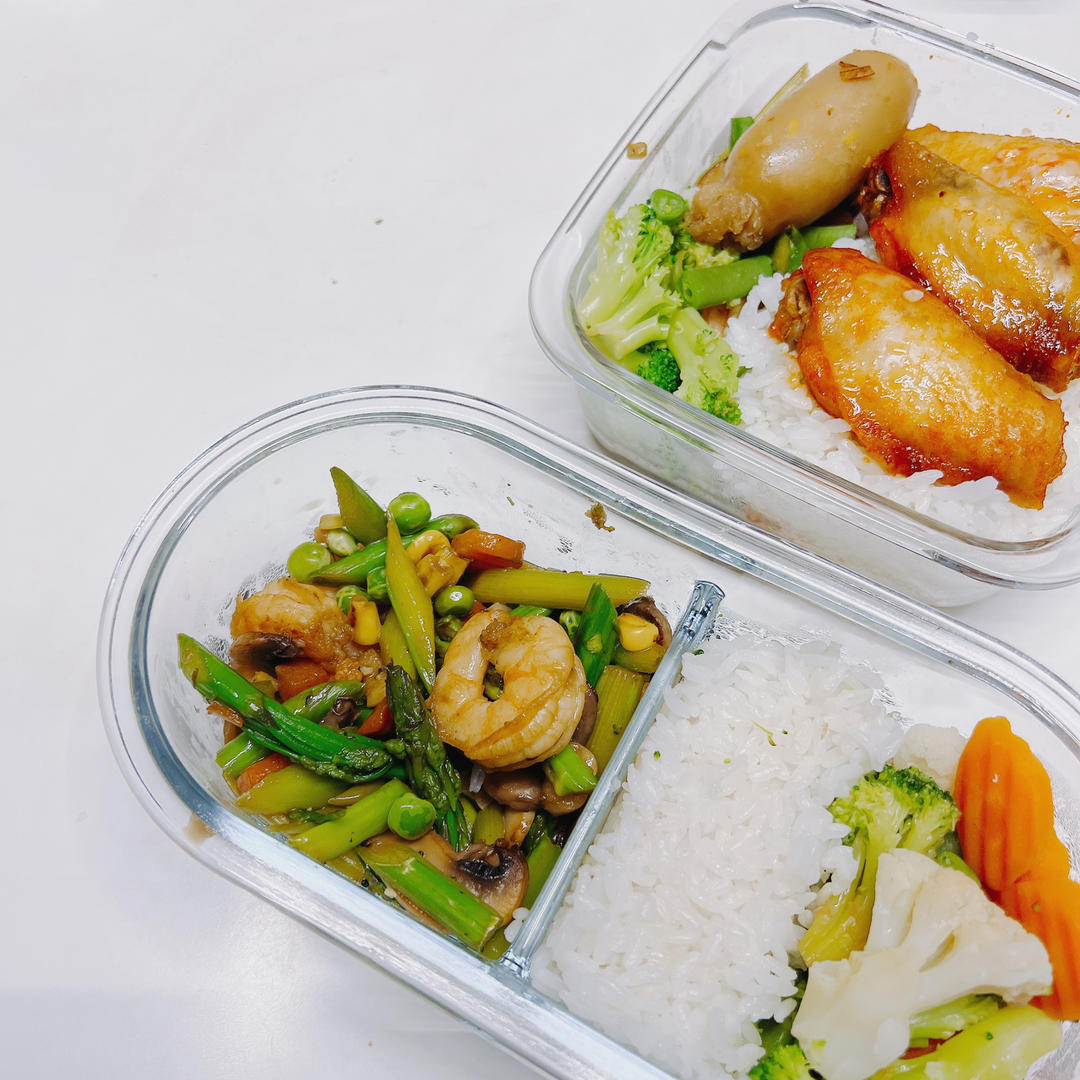 芦笋口蘑虾仁 + 白灼时蔬