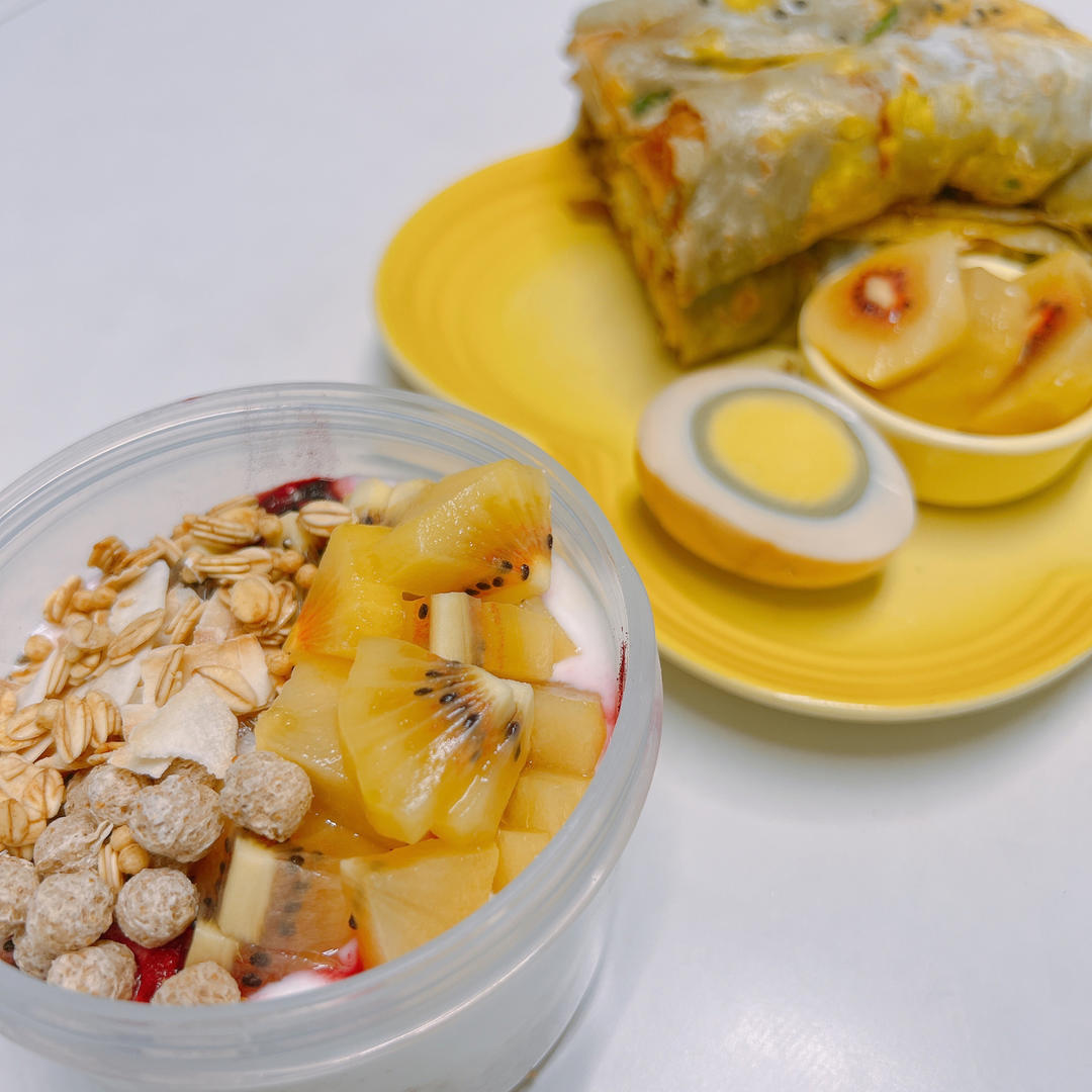 今天吃不~ 煎饼+ 酸奶碗