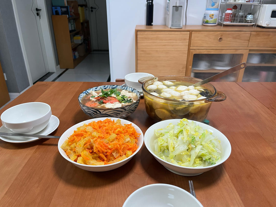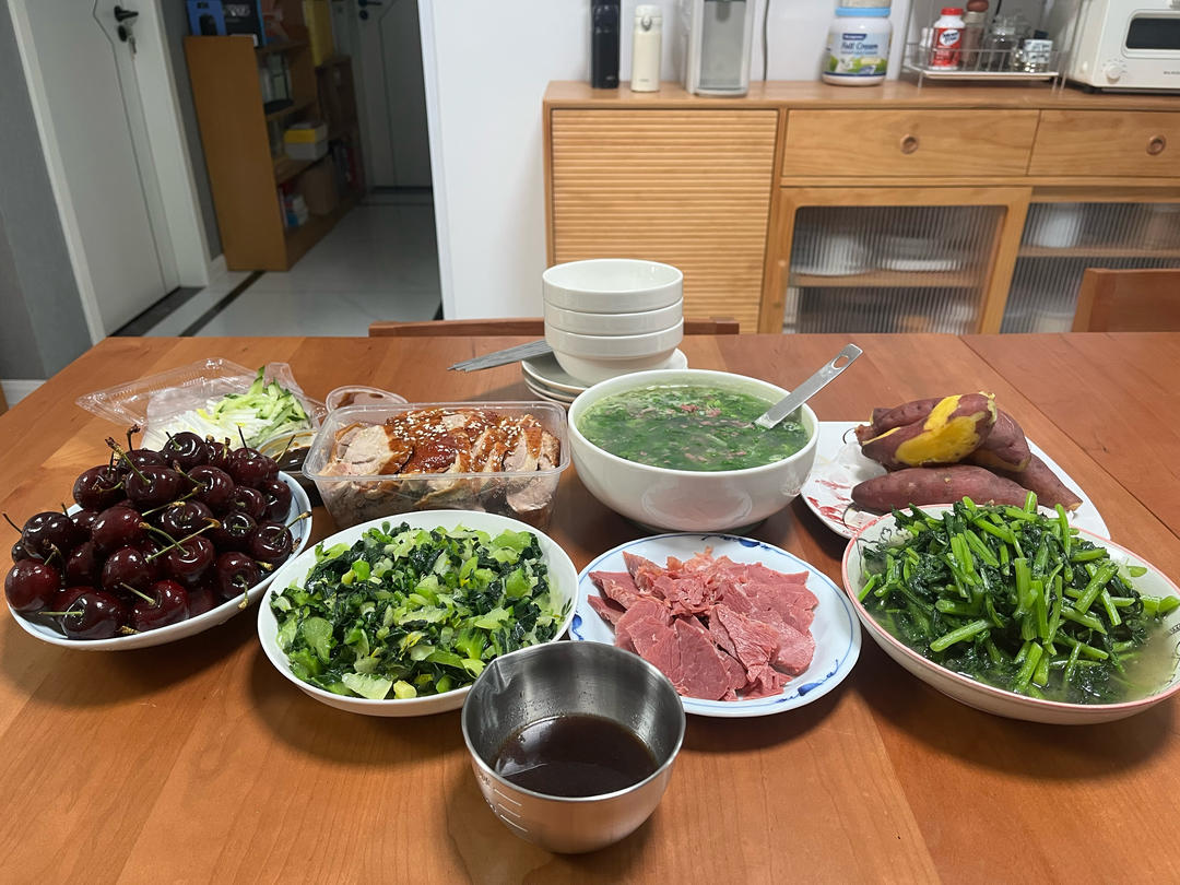妈妈烧的腊八粥,知道我们仨是吃菜大王,还烧了好几个小菜,呜呜,太好吃😋袅~...