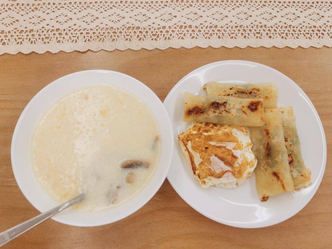 去医院之前匆忙的早餐,奶油蘑菇汤,煎鸡蛋和春卷,新的一天,新的季节真的开始啦 #喜欢吃🥚...
