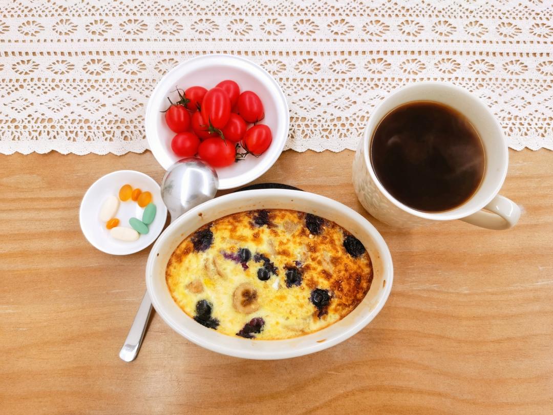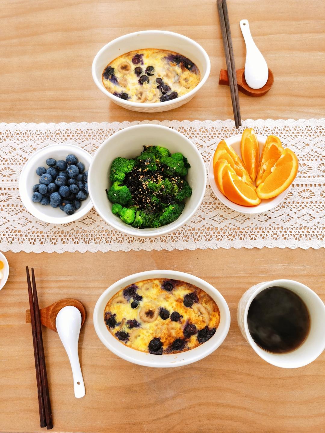 香蕉鸡蛋蓝莓燕麦牛奶,搅和搅和丢进烤箱,等我看完36页的合同并回复客户后,...