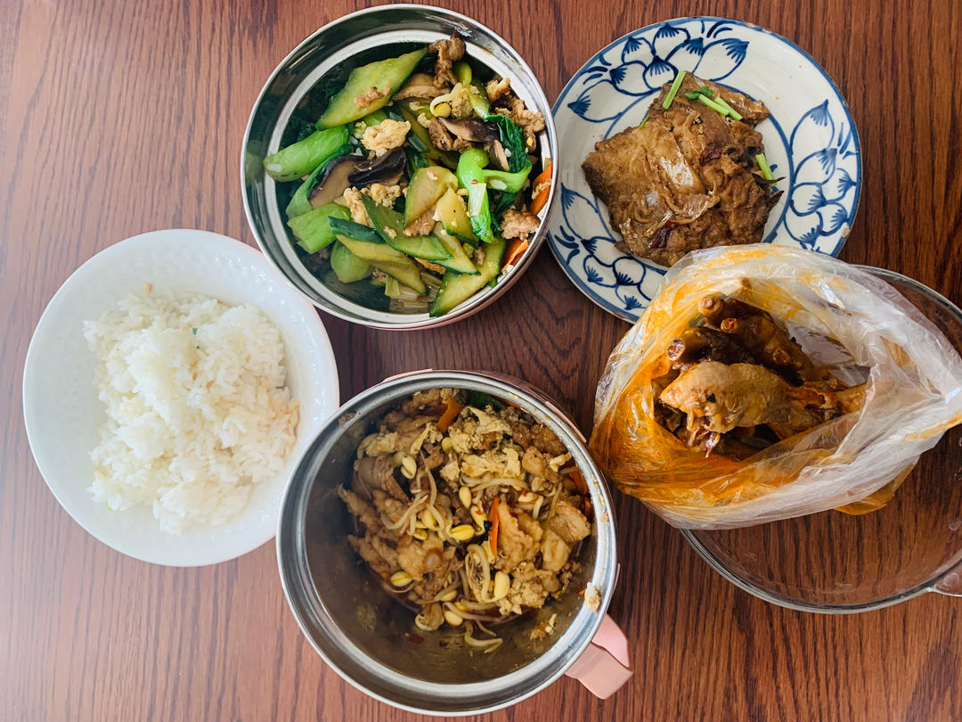 腐竹炒肉+糙米饭