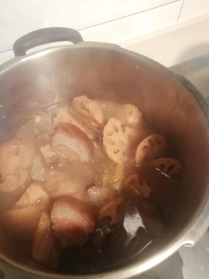 腊肉炖藕,还放了点花生米用高压锅炖的,第一次炖出这么粉糯的藕来记录一下,其实腊鸭腊鸡都可以的!