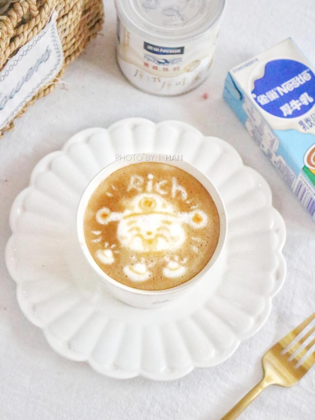 今儿初八,用雀巢厚牛乳和炼乳做了一杯财神咖啡,祝大家发发发!😁😁😁