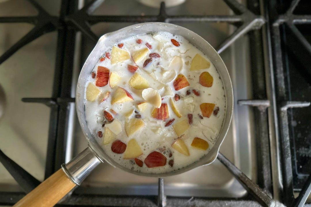 姐的苹果百合银耳羹,天寒地冻的,这一杯配上昨天做的酸奶蒸蛋糕和溏心蛋吃的舒...