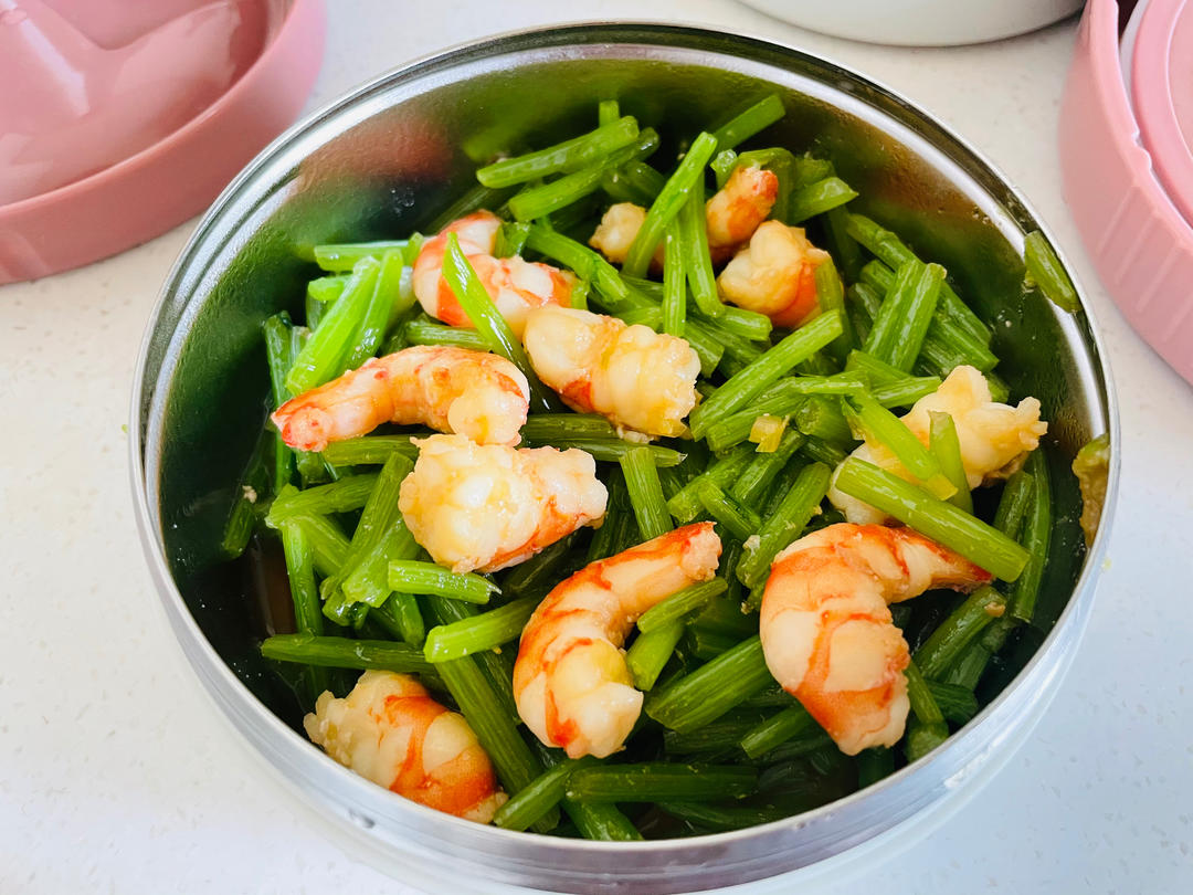 给宝贝儿送的晚餐之二:茼蒿杆炒虾仁