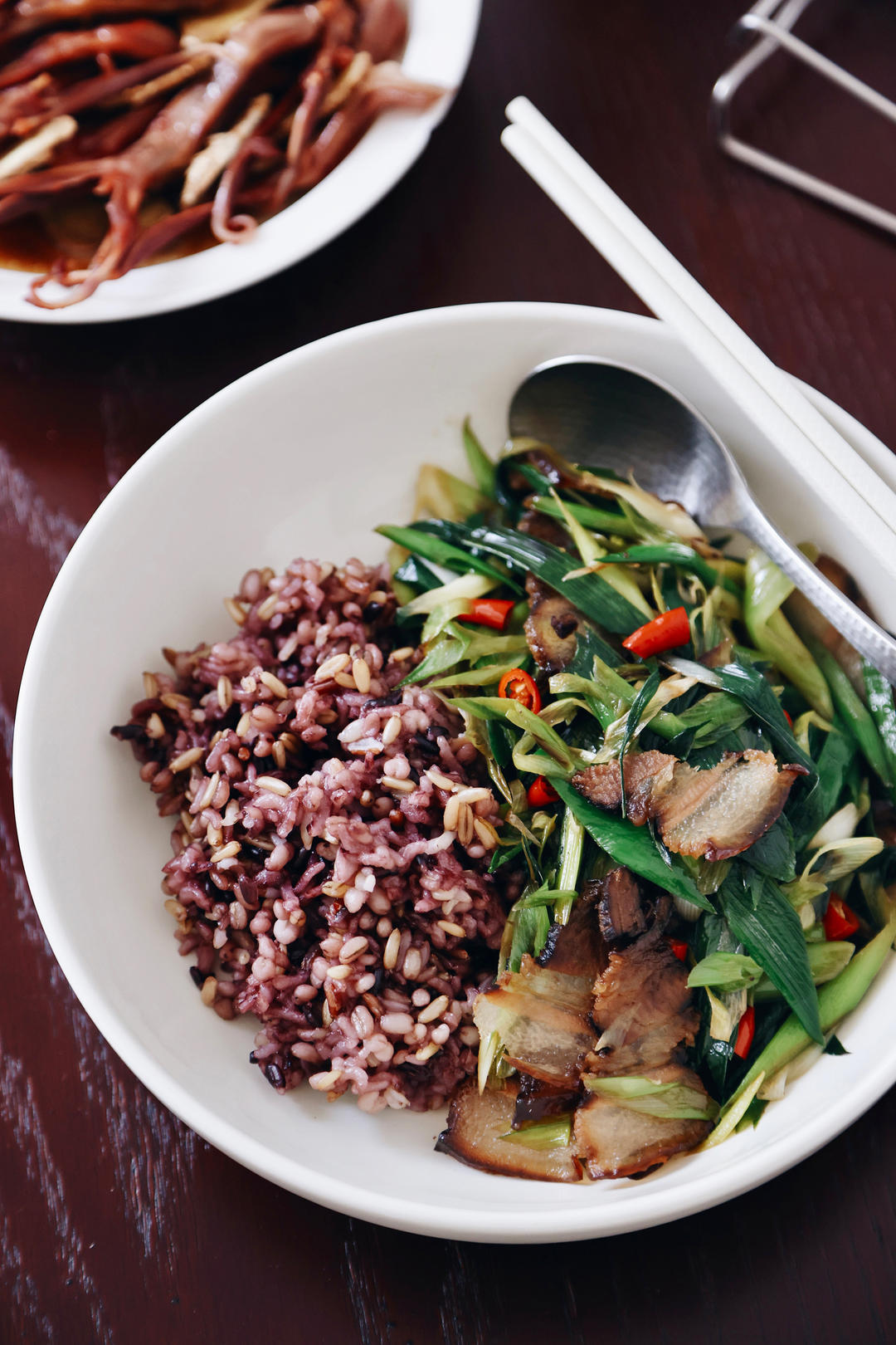 青蒜酱肉+杂粮饭+酱鸭舌