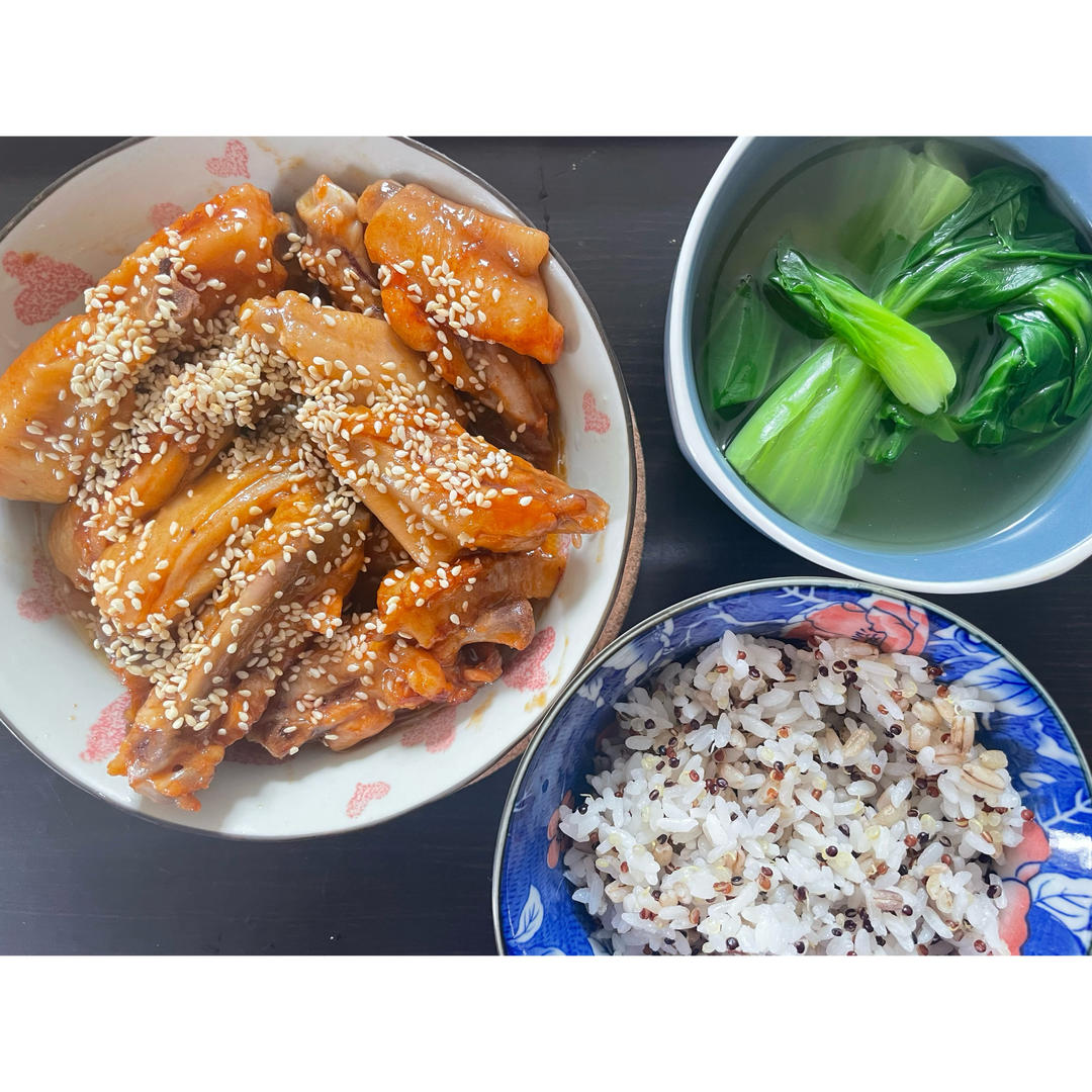 奥尔良鸡翅+青菜汤+糙米饭