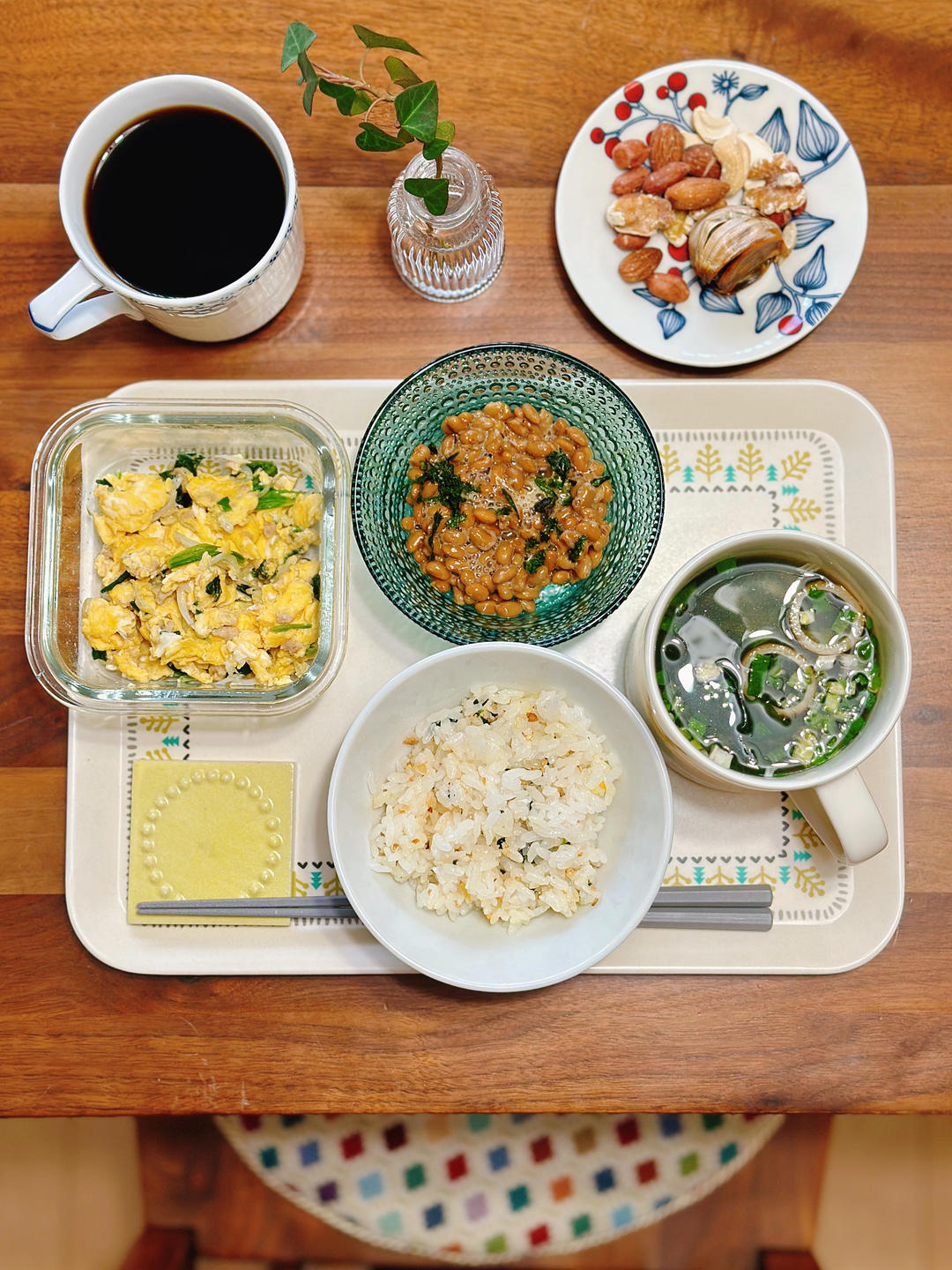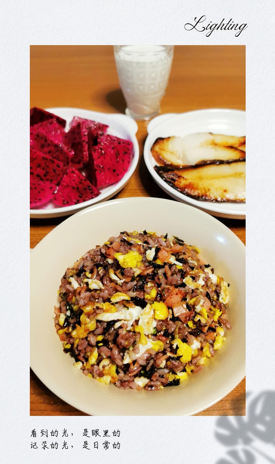 鸡蛋是昨晚多做了一些提前盛出来的。吃完之后这些之后又加了一根香蕉🍌就着喝咖啡☕️刚刚好...