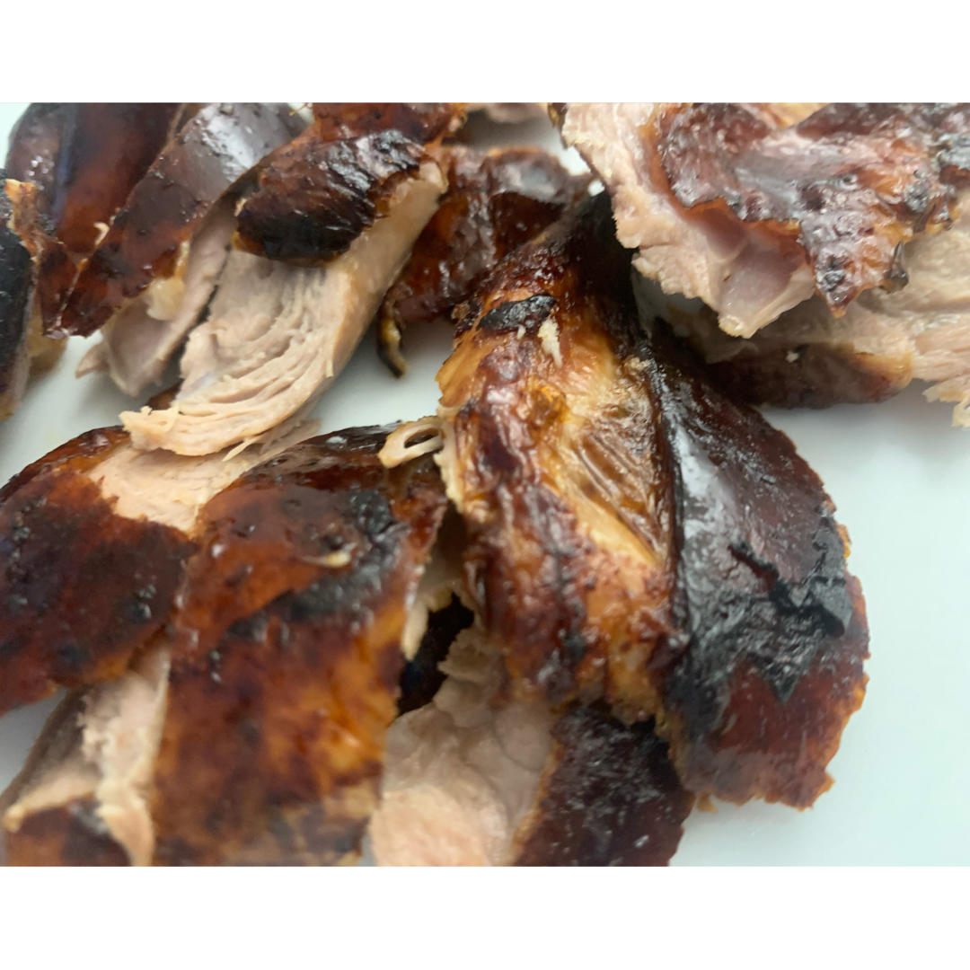 就两个鸭腿洗干净泡了一个小时淘米水,然后表皮浇开水,晾干一两个小时,刷了两三遍蜂蜜+黄...
