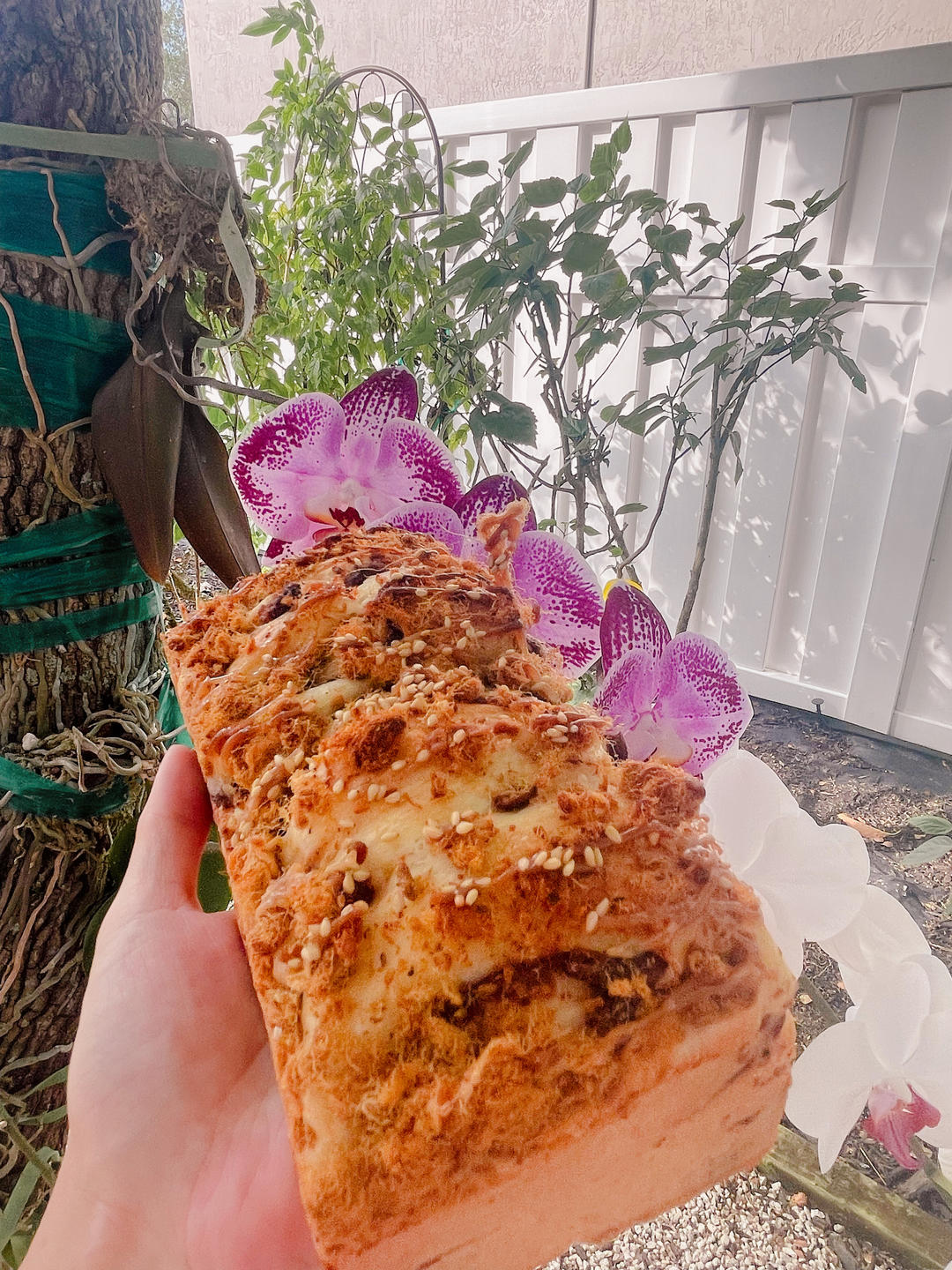 用的现成的豆沙。两条做红豆松松,两条放了亚麻籽粉。水分下次要减点有点粘手。