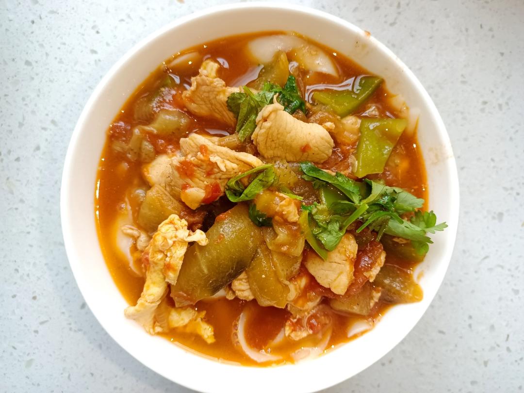 西红柿茄子鸡肉刀削面