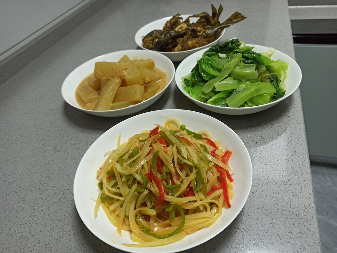 土豆丝 腐乳烧冬瓜 红烧昂刺 水油焖生菜