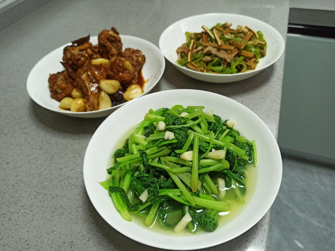 水油焖青菜 蒜子翅根 青椒肉丝炒豆干