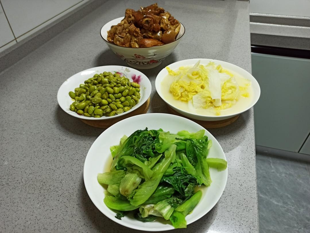 炒生菜 蒸青豆 焖猪蹄 腐乳蒸娃娃菜