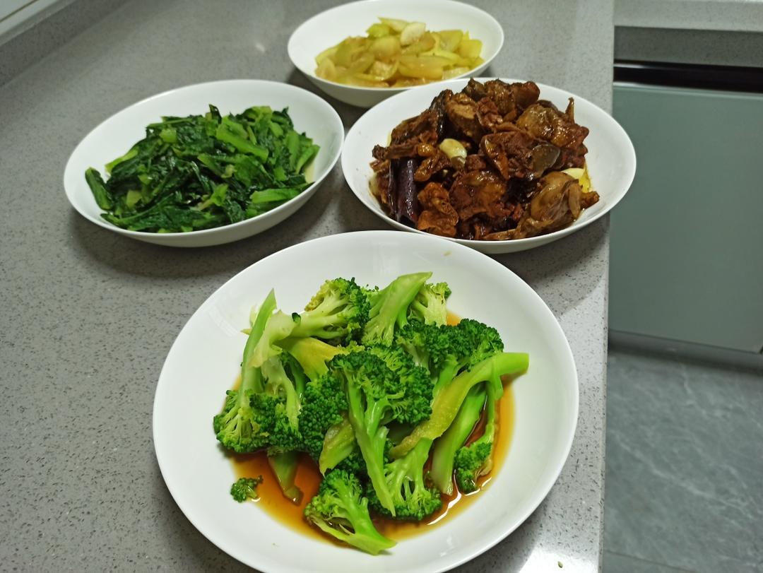 焯西兰花 油麦菜 瓠子片 红烧鸡