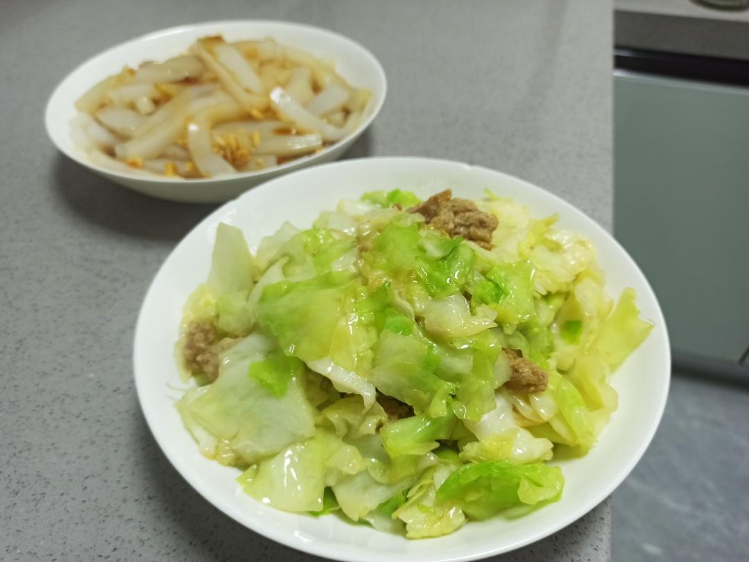 炒洋白菜 瓠丝 排骨焖毛豆