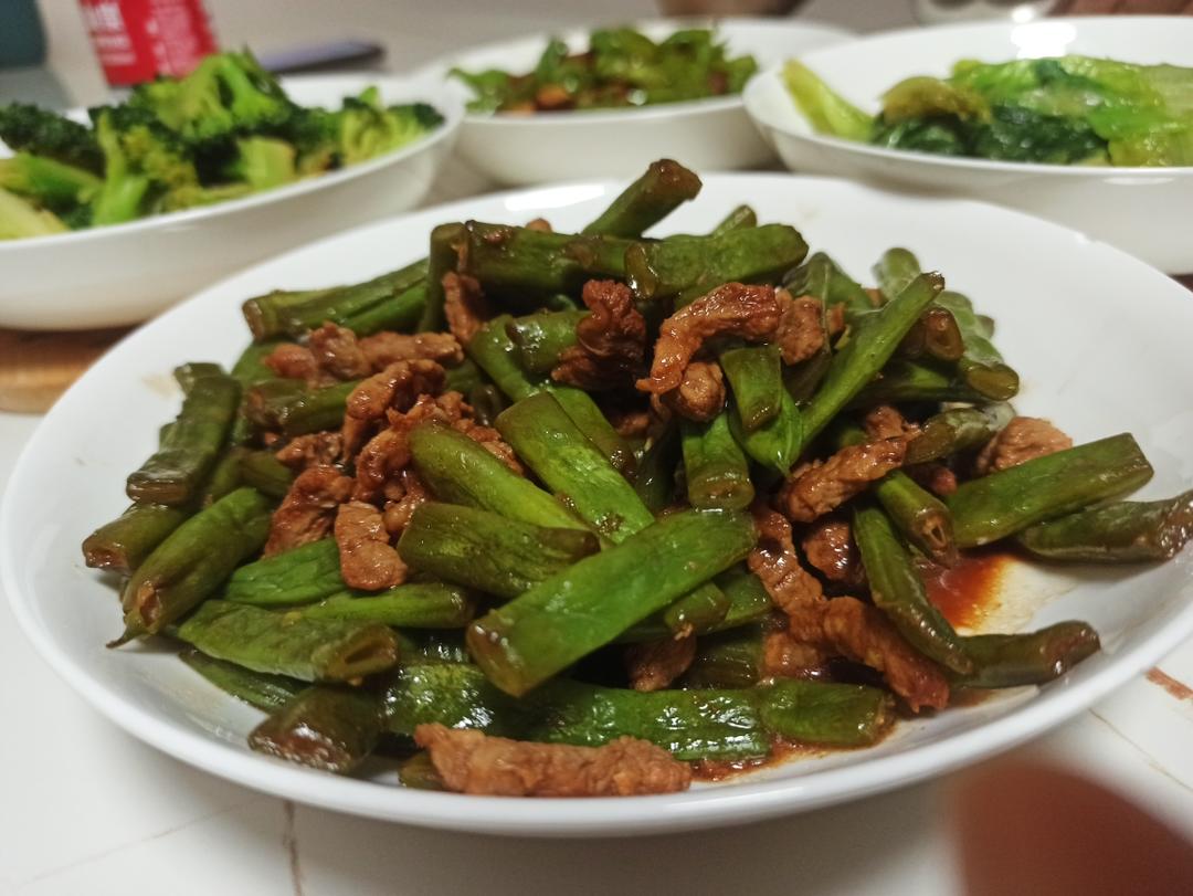 肉丝豆角 西兰花 青椒干丝 生菜(全是可爸作品)