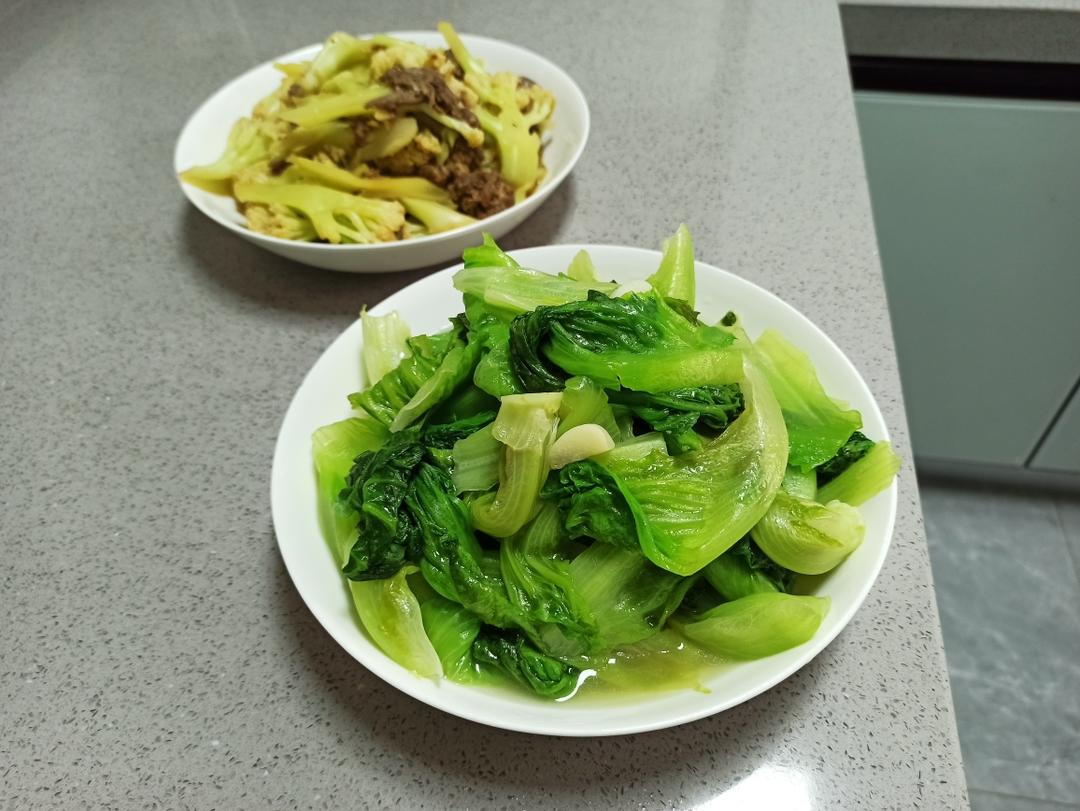 蒜子生菜 牛肉花菜 和未入镜的香肠蒸藕丁