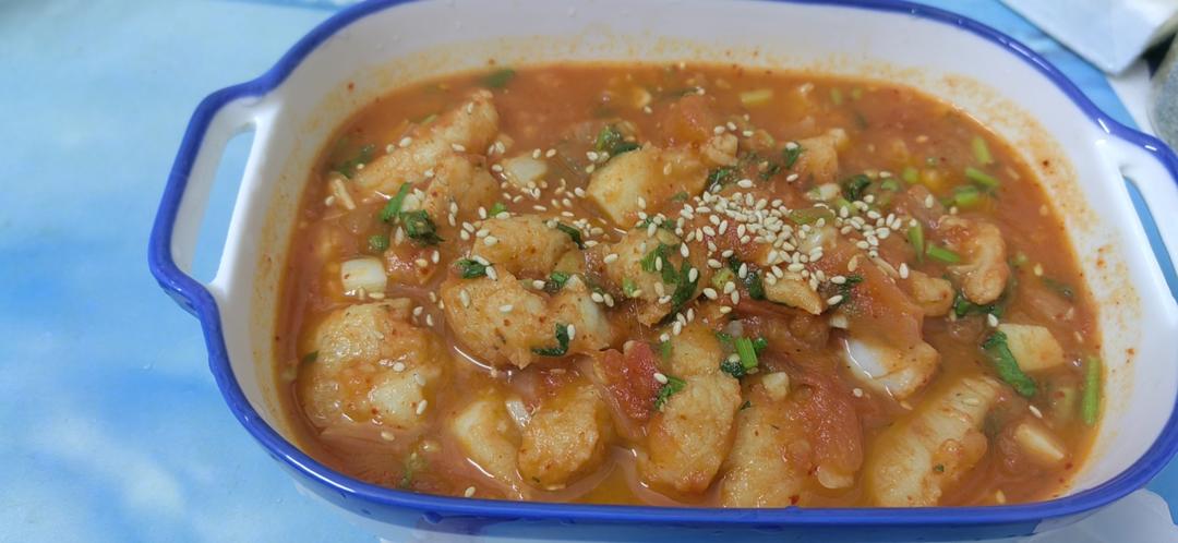 没葱了,加了香菜和洋葱,擅自倒辣椒粉且不小心倒多了,味道还行,汤汁味道好,鱼感觉还是有一...