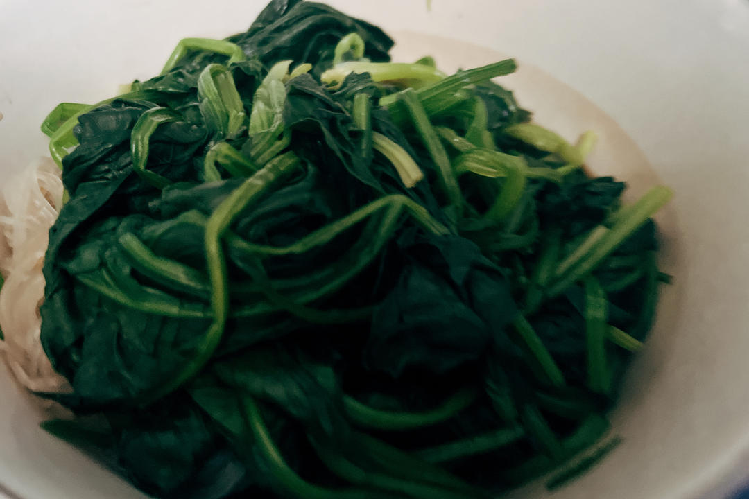 菠菜拌粉丝,太热了不想炒菜。