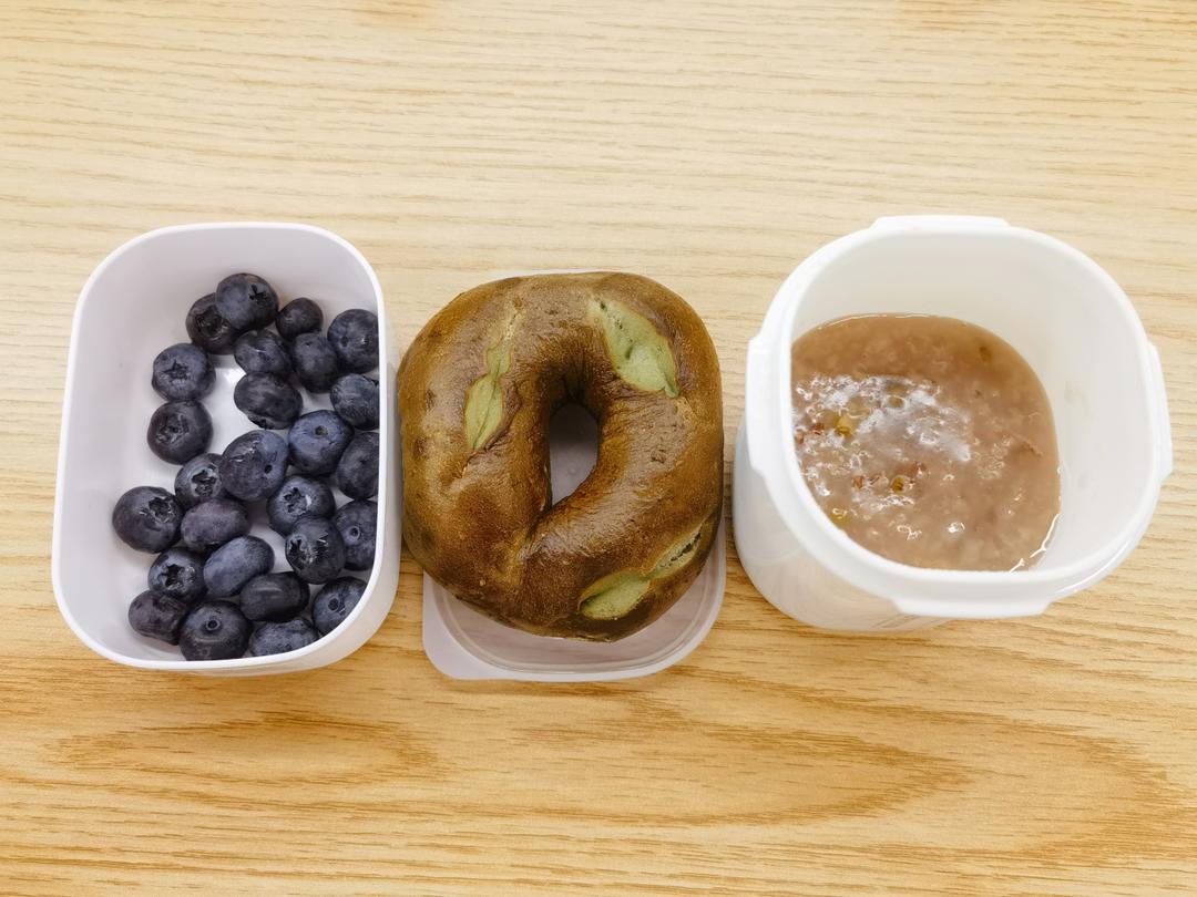 今日天气🌧 早餐主角:自制抹茶芝士贝果三明治+鸡蛋蔬果沙拉🥗+奶咖。下雨天和音乐很配哦😄谁能知道撸贝果的快乐!😊#早餐•...