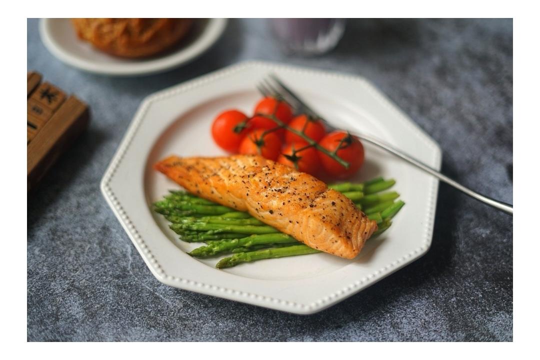 8/31,早餐:芦笋番茄三文鱼,蘑菇头菠萝包,香芋奶茶(荔浦芋头、紫薯、炼乳、牛奶)