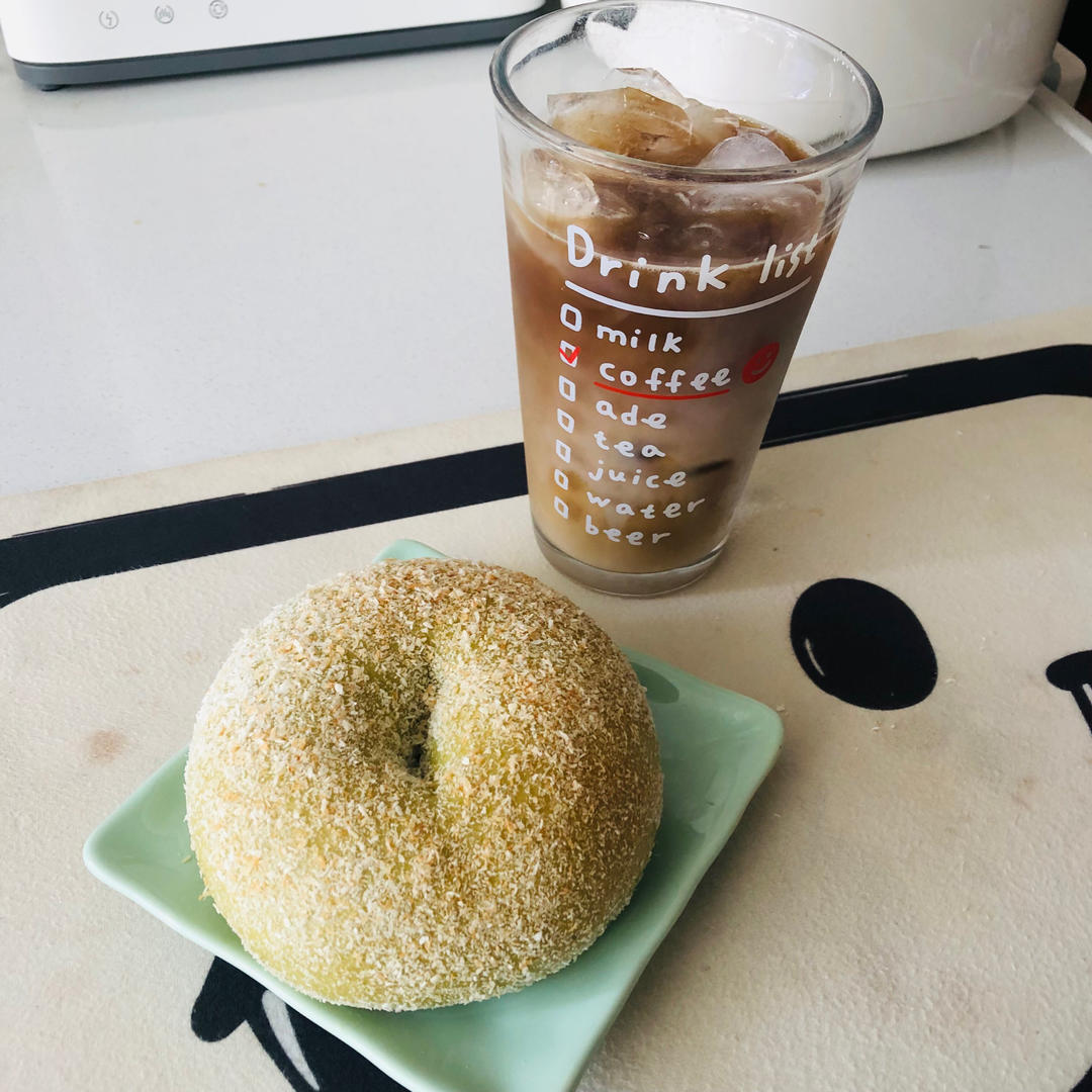 美式加奶。斑斓椰蓉贝果